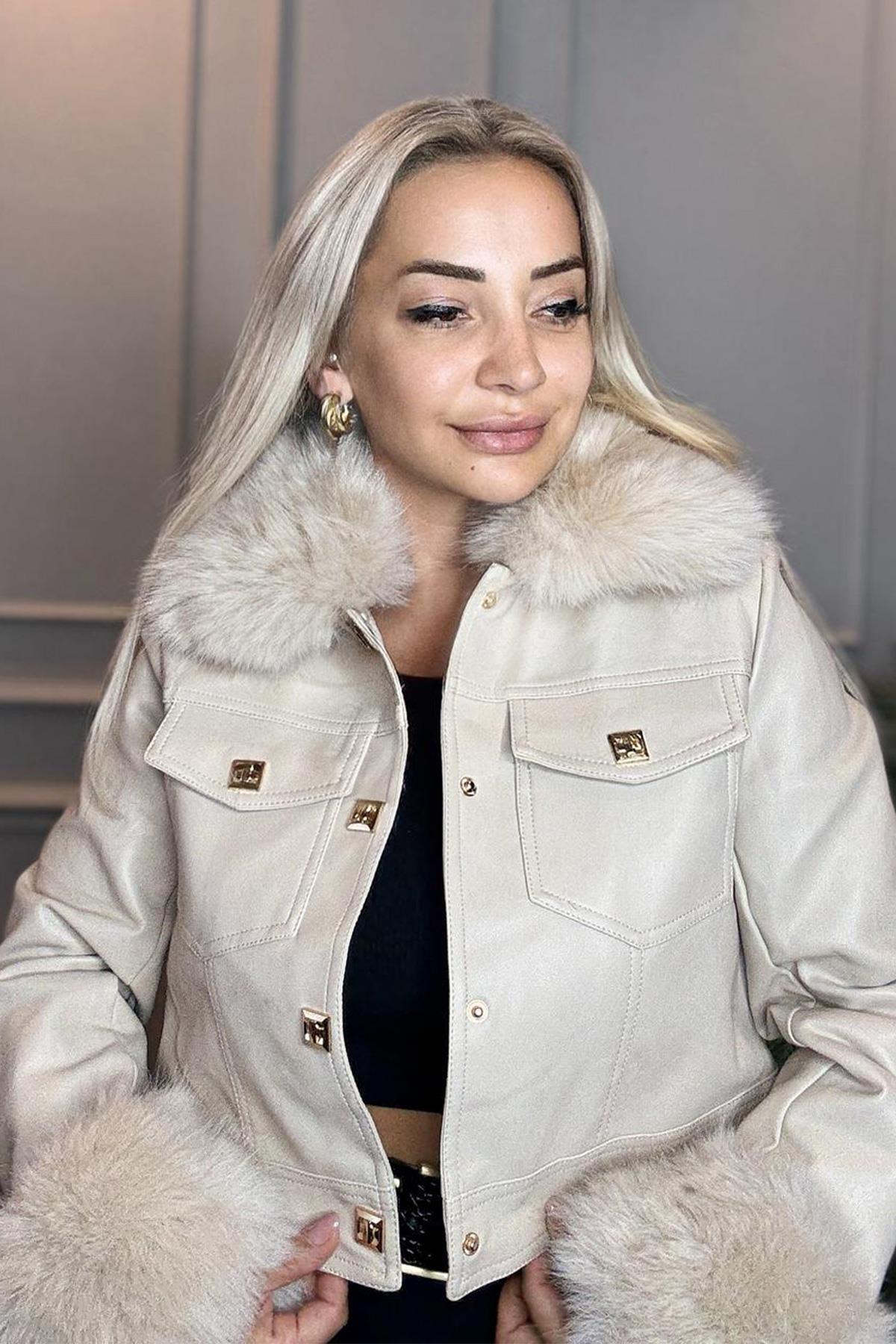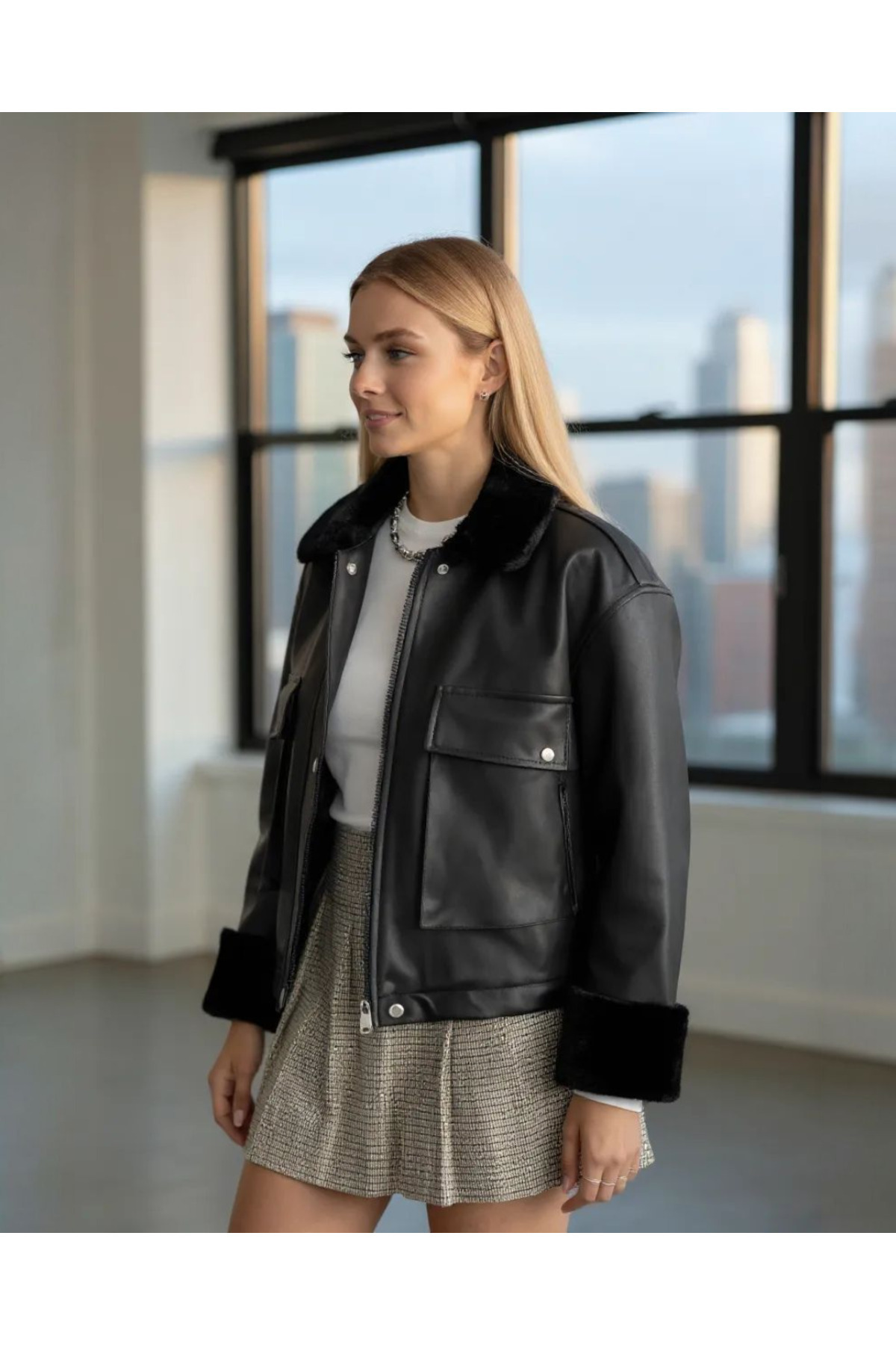 Siyah Bomber Yakası Kolları Kürklü Deri Ceket Siyah Bomber Yakası Kolları Kürklü Deri Ceket bomberceket L