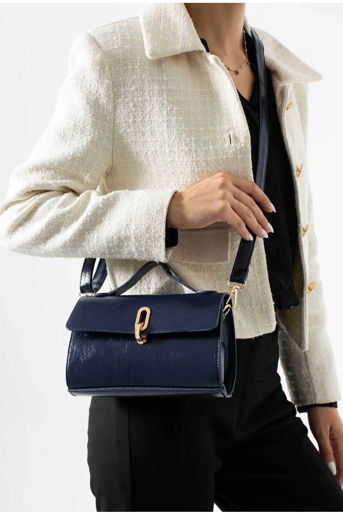 Kadın Şık Tasarımlı Lacivert Toka Detaylı El Ve Omuz Çantası Kadın Şık Tasarımlı Lacivert Toka Detaylı El Ve Omuz Çantası 5995 Standart