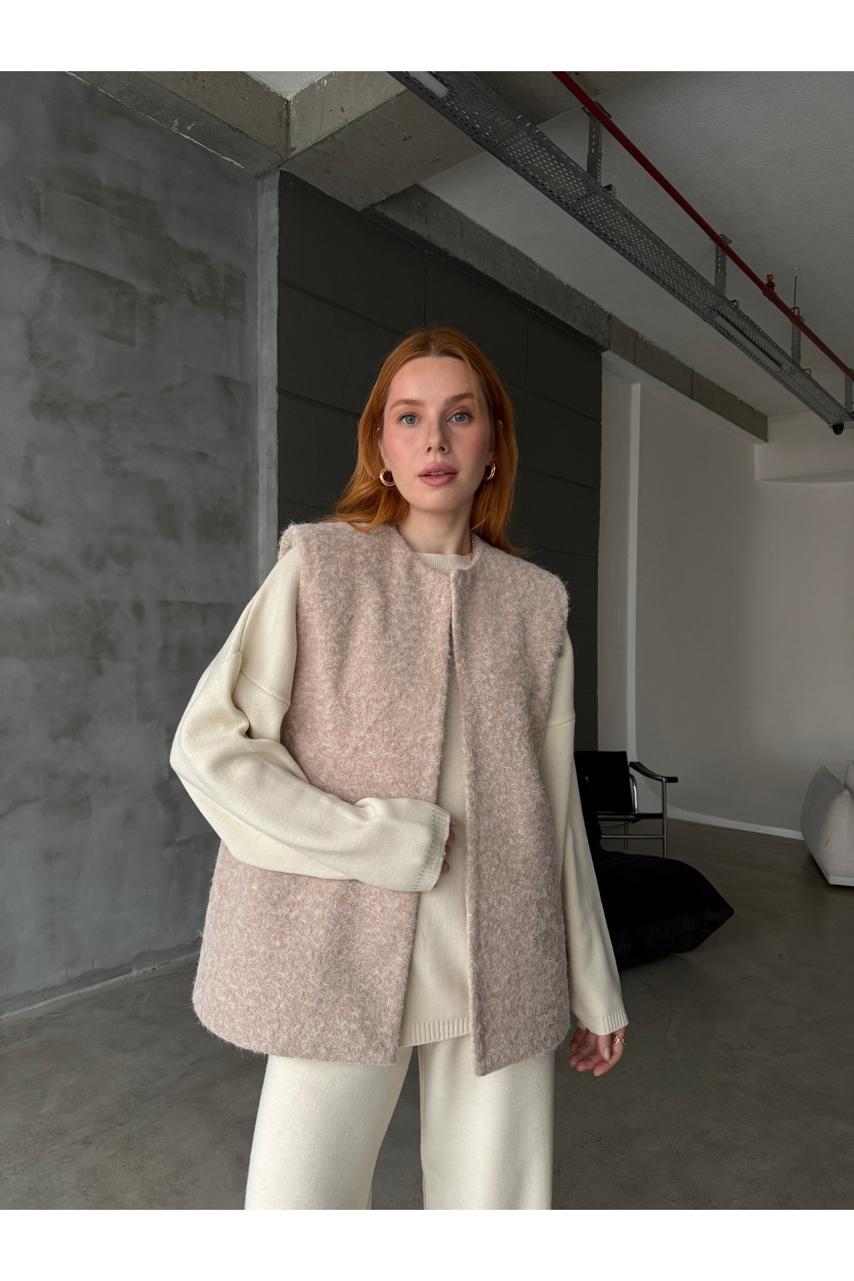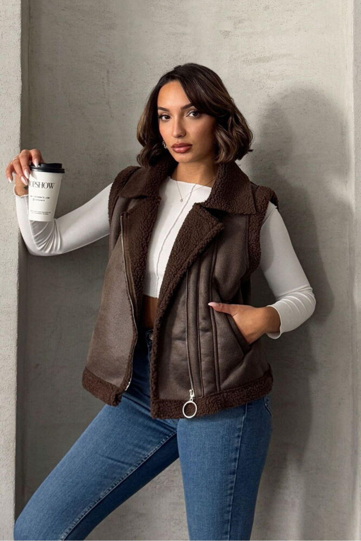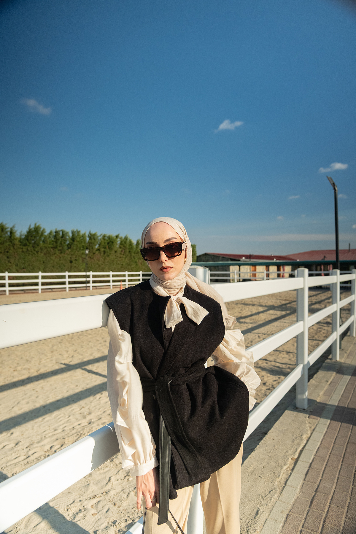 Kadın Bel Bağlamalı Kaşe Yelek Siyah Kadın Bel Bağlamalı Kaşe Yelek Siyah 111-4002 L/XL