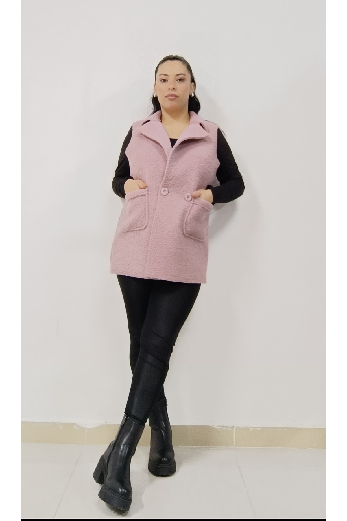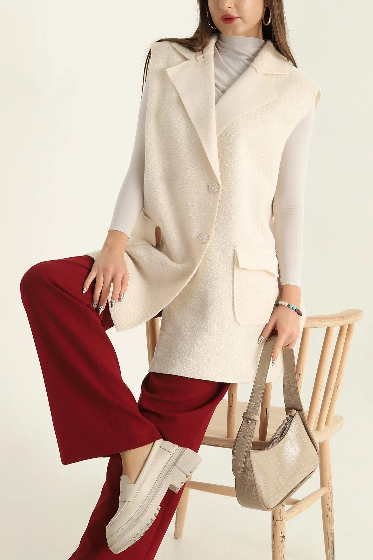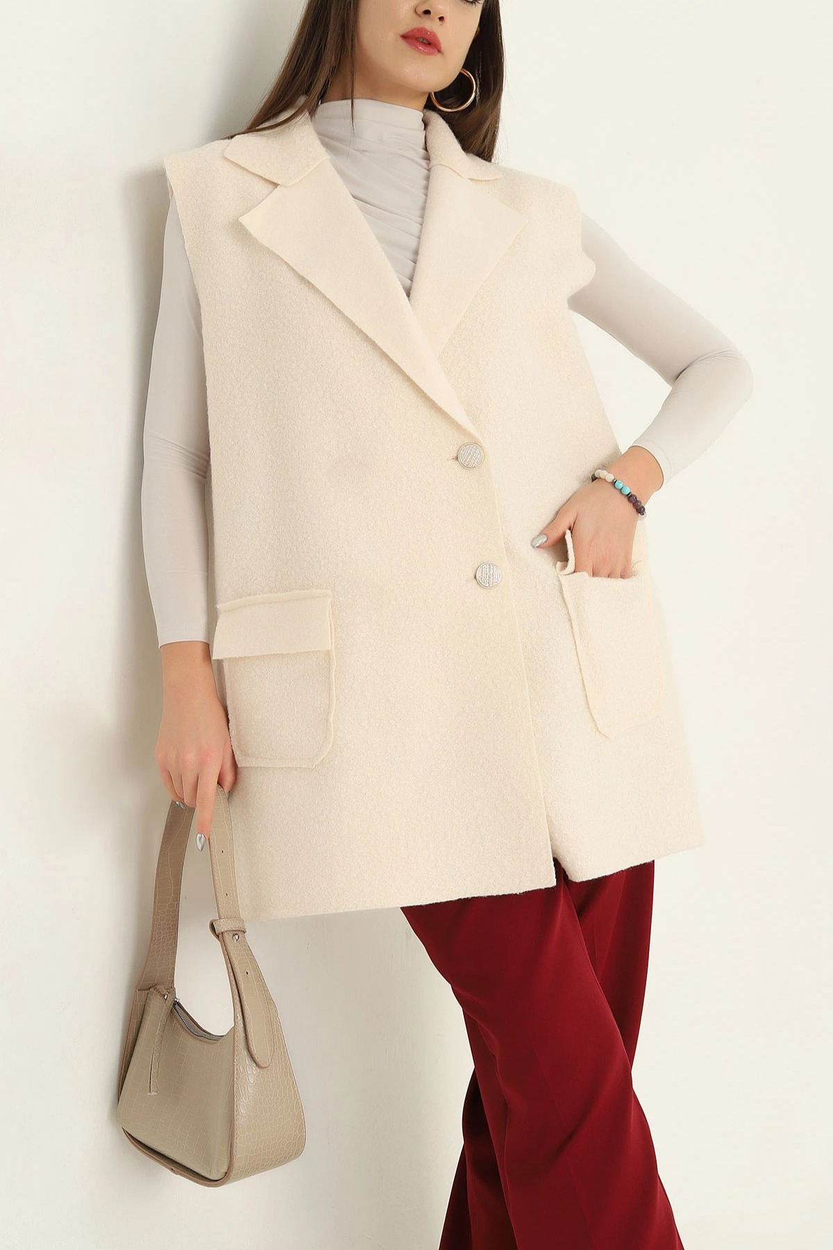 Kadın Kruvaze Düğmeli Buklet Kaşe Yelek Kadın Kruvaze Düğmeli Buklet Kaşe Yelek VıoShıne0326 42