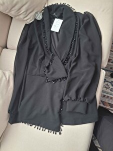 Kadın Büyük Beden Kruvaze Yaka Şifon Kol Taş Detaylı Ceket Ön Parçalı Bluz 25008 Siyah Kadın Büyük Beden Kruvaze Yaka Şifon Kol Taş Detaylı Ceket Ön Parçalı Bluz 25008 Siyah 52-54