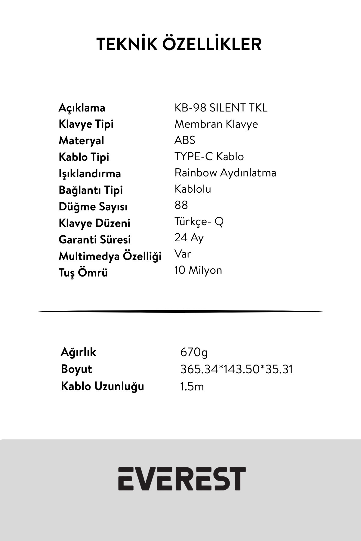SILENT TKL Sessiz Rainbow Q Türkçe Klavye Membrane Oyuncu Klavyesi Gaming Klavye KB-98 TKL SILENT TKL Sessiz Rainbow Q Türkçe Klavye Membrane Oyuncu Klavyesi Gaming Klavye KB-98 TKL DSM-98TKL تک سایز