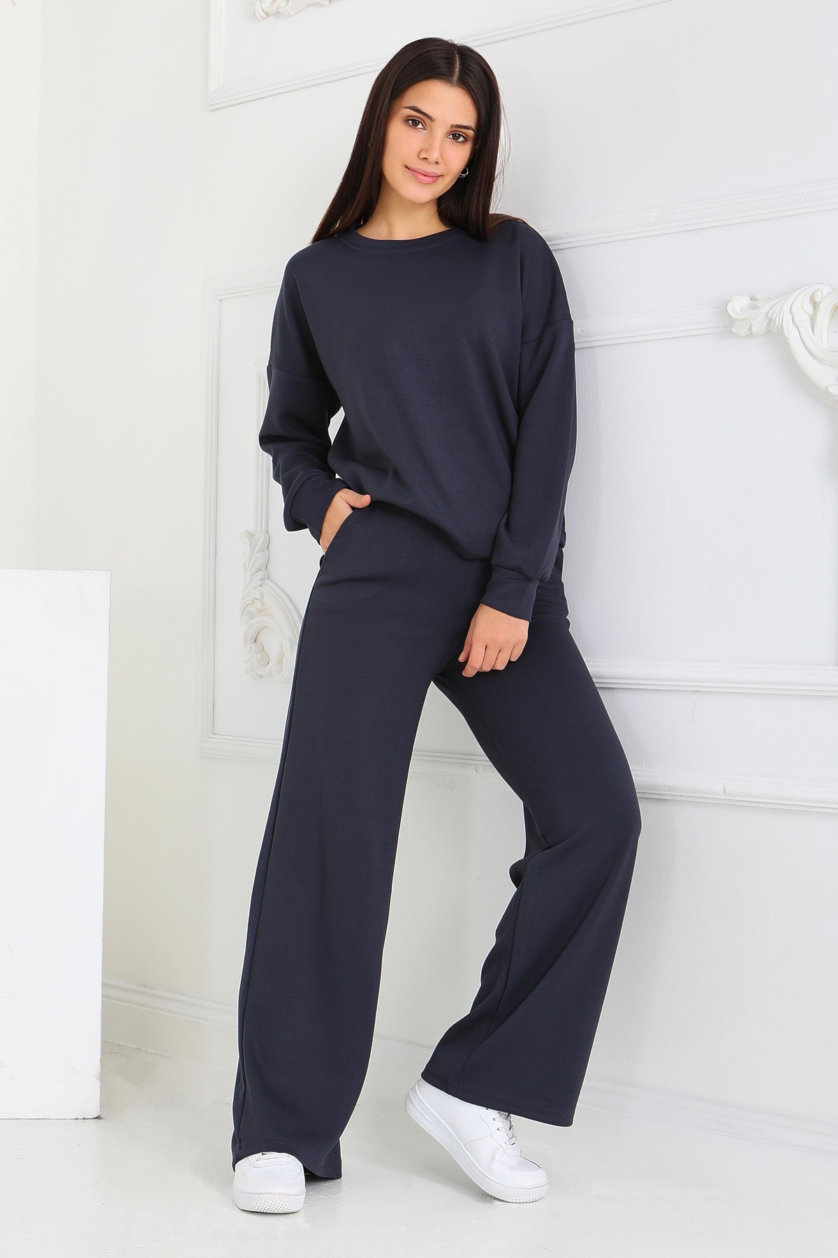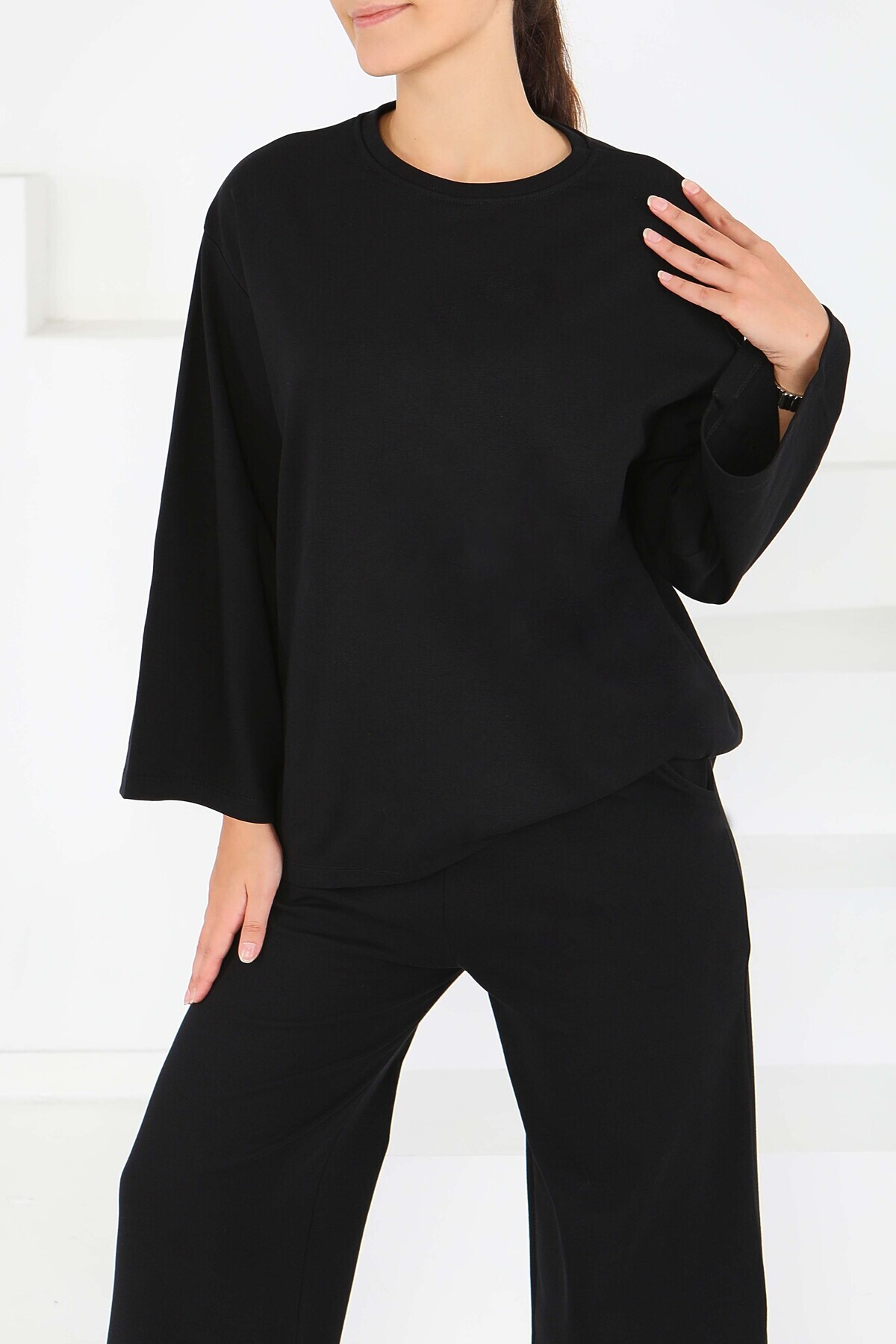 Geniş Paçalı İki İplik Eşofman Takımı Siyah - 27717-SIYAH Geniş Paçalı İki İplik Eşofman Takımı Siyah - 27717-SIYAH L