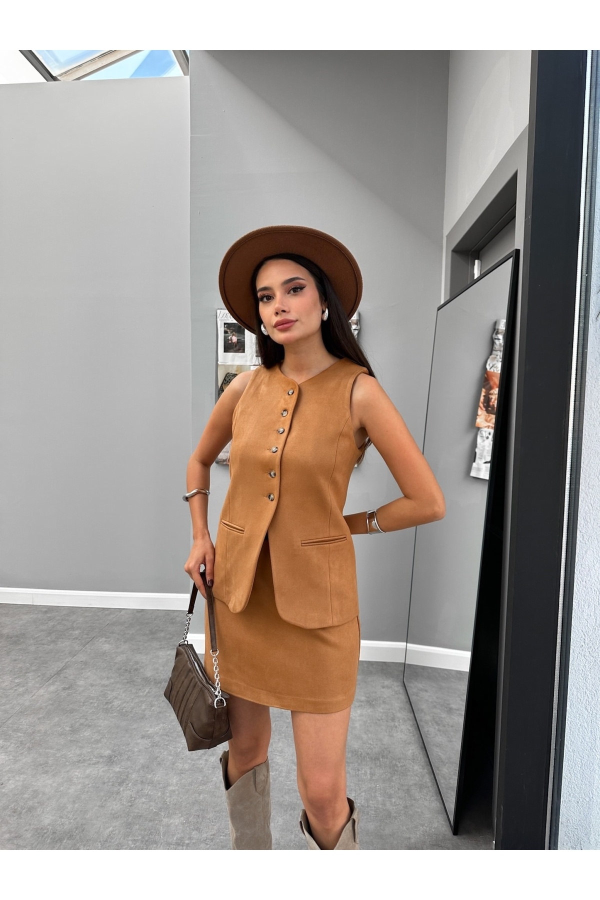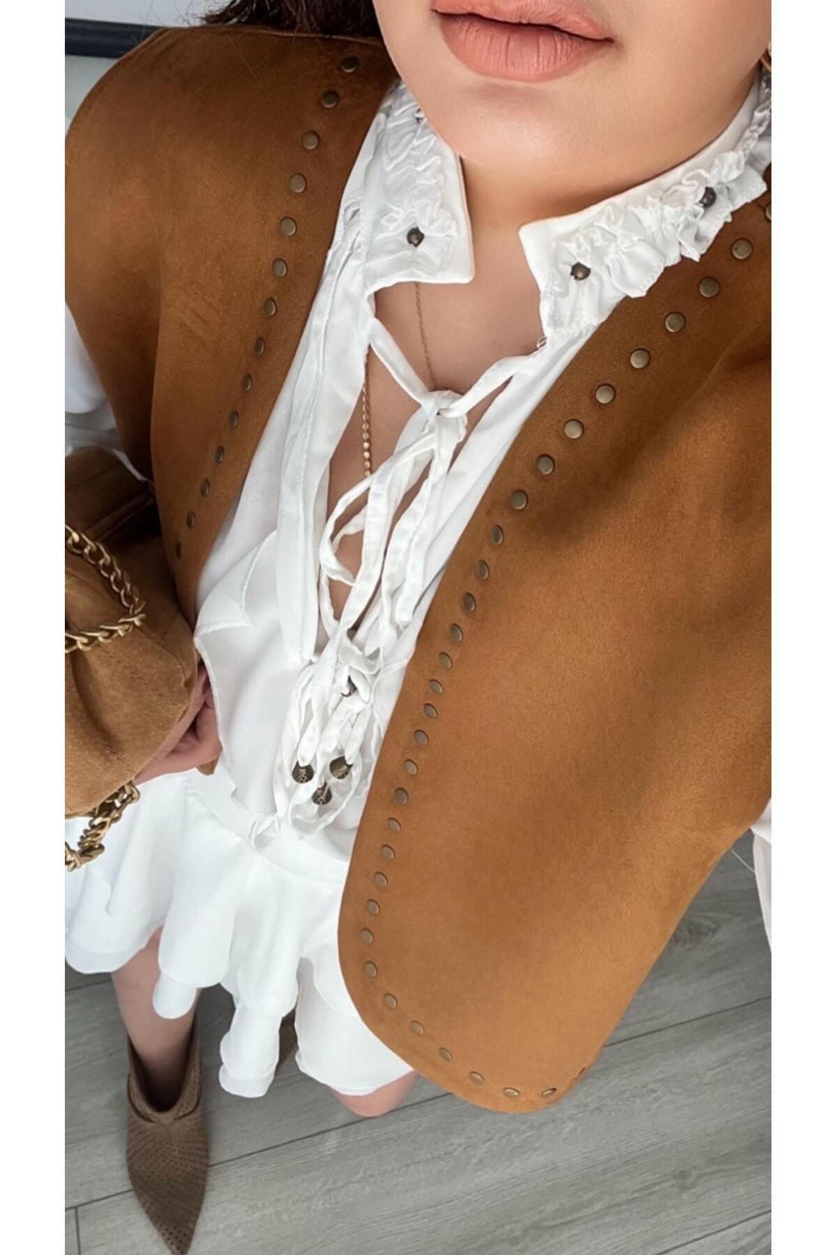 Taba Zımbalı Süet Yelek Taba Zımbalı Süet Yelek YY0021 L