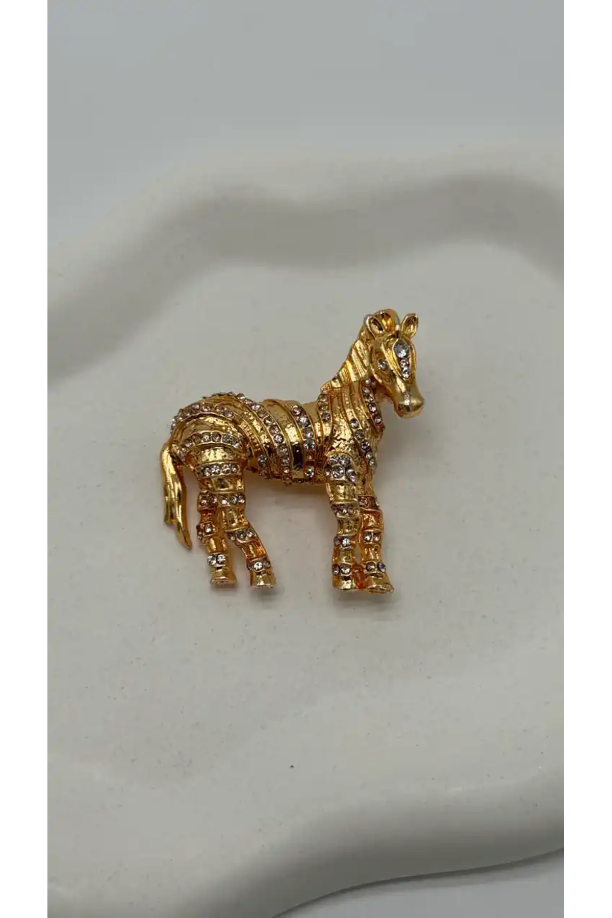 Gold Taş Detay Altın At Broş Gold Taş Detay Altın At Broş TBR25005 تک سایز