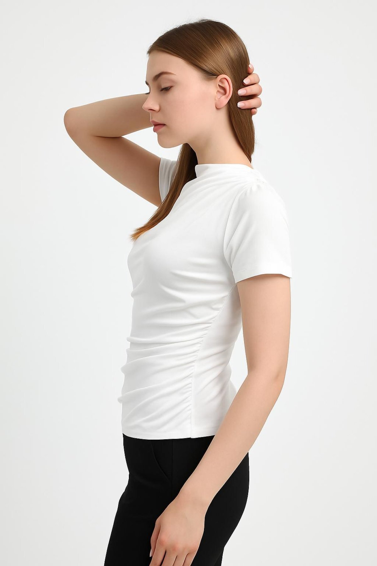 Büzgü Detaylı Kısa Kol Sandy BLUZ Büzgü Detaylı Kısa Kol Sandy BLUZ 2417ksswblz0001 L