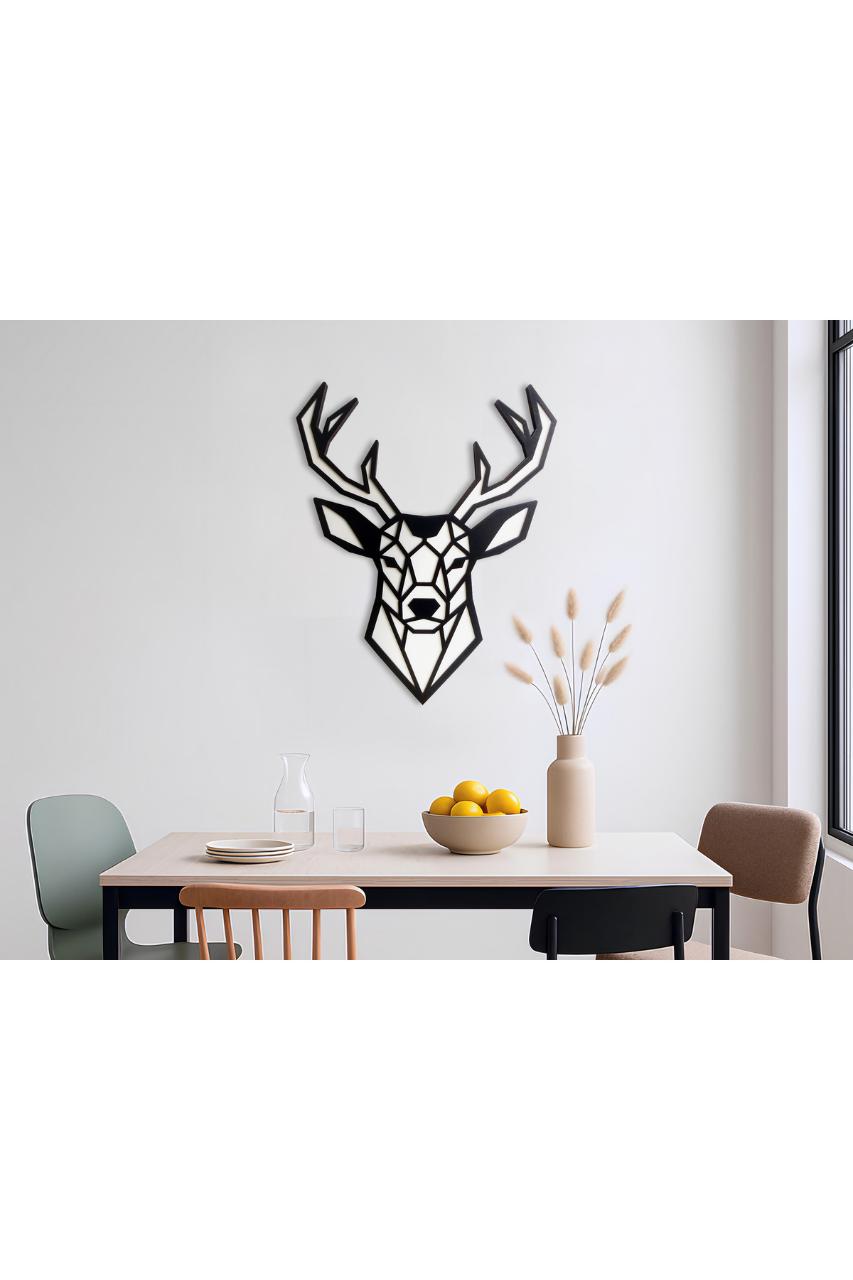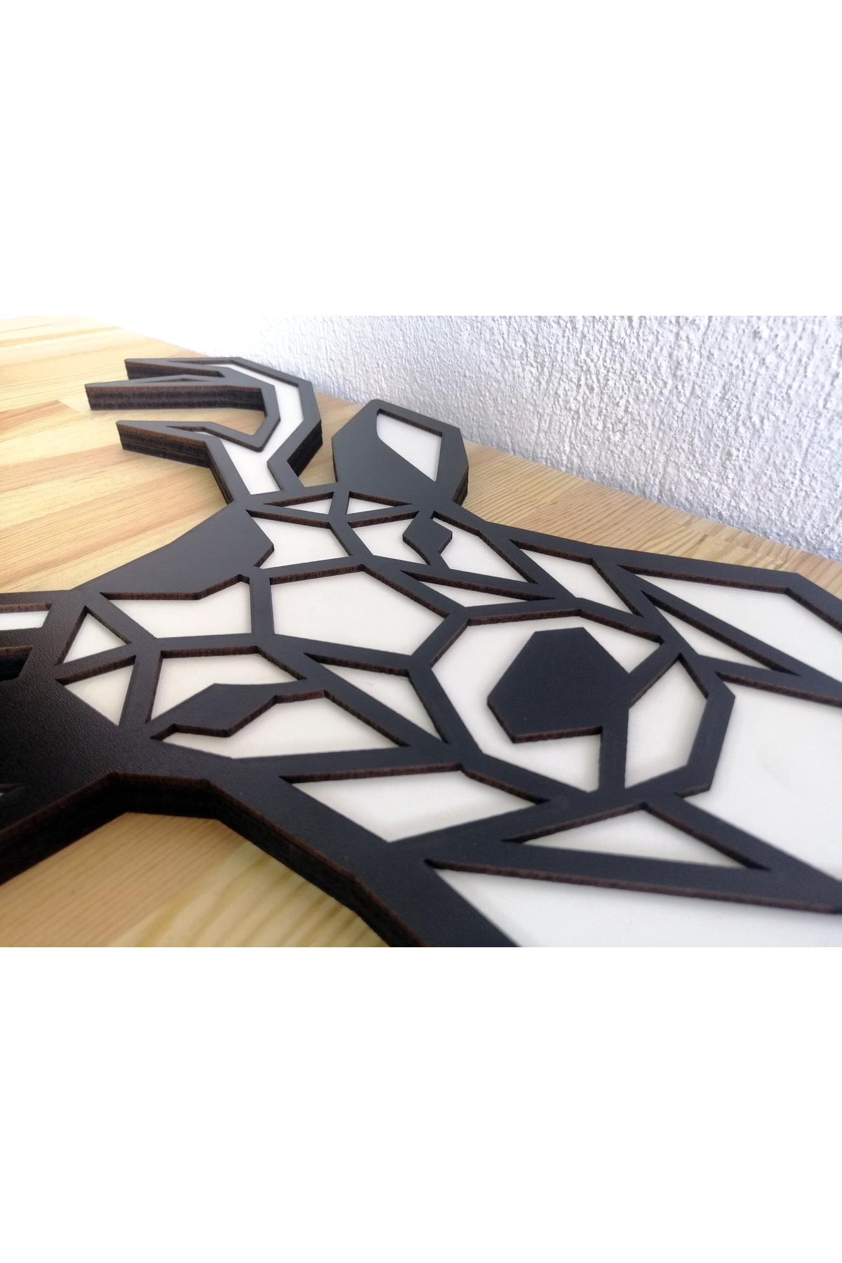 Veika – Geometrik Geyik Figürlü Siyah Beyaz MDF Ahşap Katmanlı Duvar Tablosu | Lazer Kesim Veika – Geometrik Geyik Figürlü Siyah Beyaz MDF Ahşap Katmanlı Duvar Tablosu | Lazer Kesim B03 55 x 68
