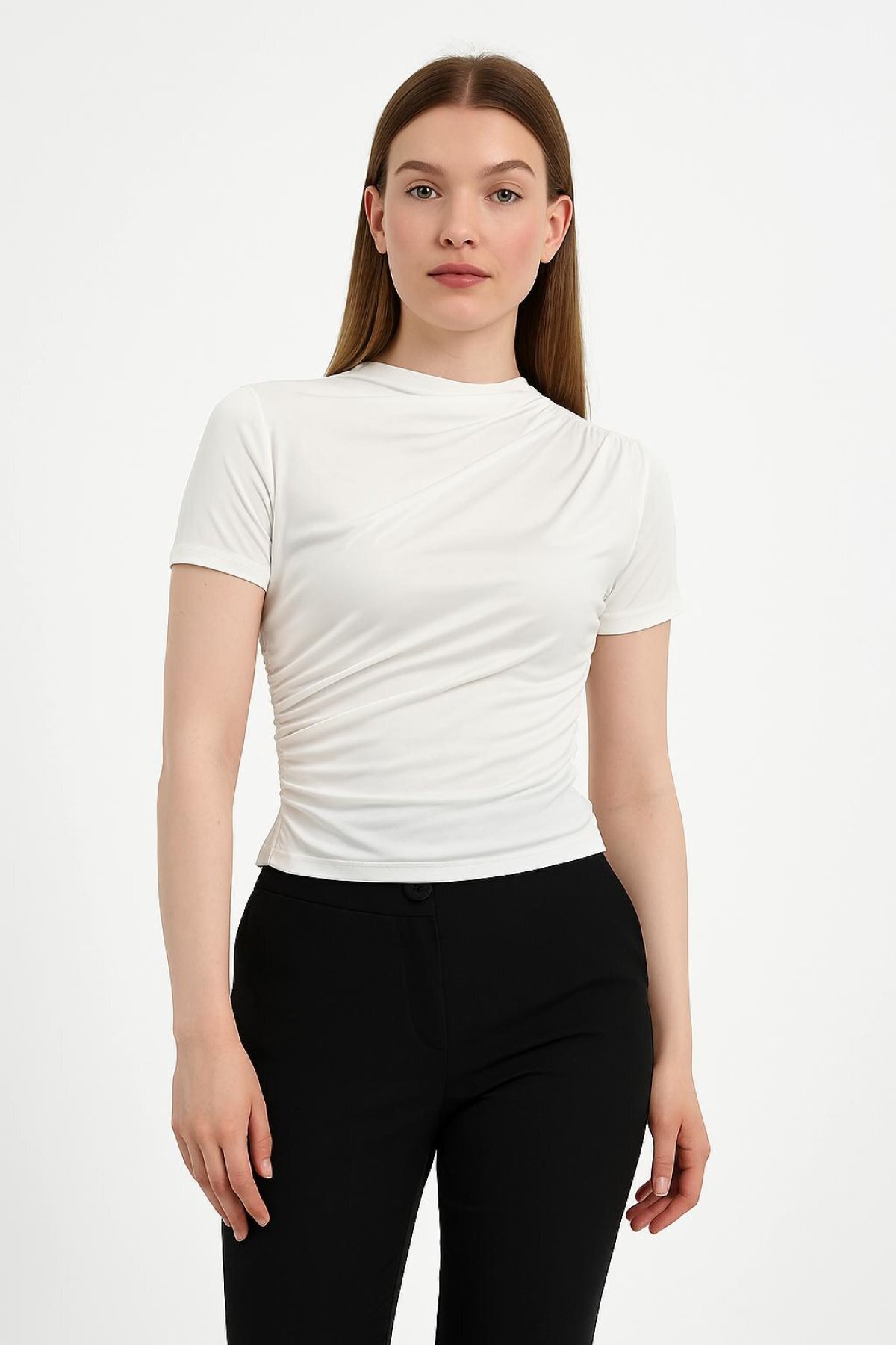 Büzgü Detaylı Kısa Kol Sandy BLUZ Büzgü Detaylı Kısa Kol Sandy BLUZ 2417ksswblz0001 L