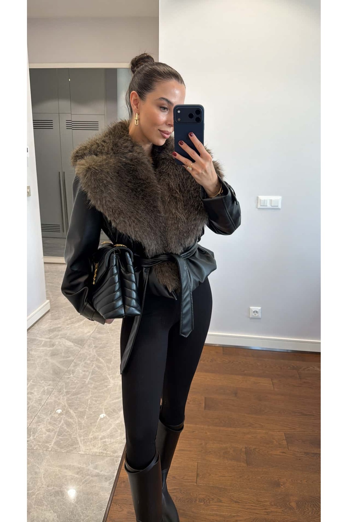 KÜRK DETAYLI DERİ CEKET KÜRK DETAYLI DERİ CEKET 08R6 L