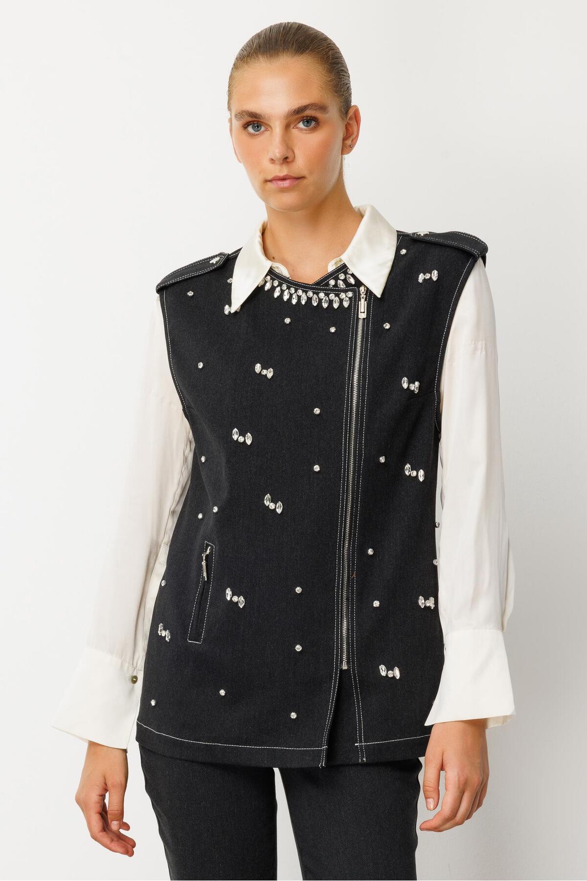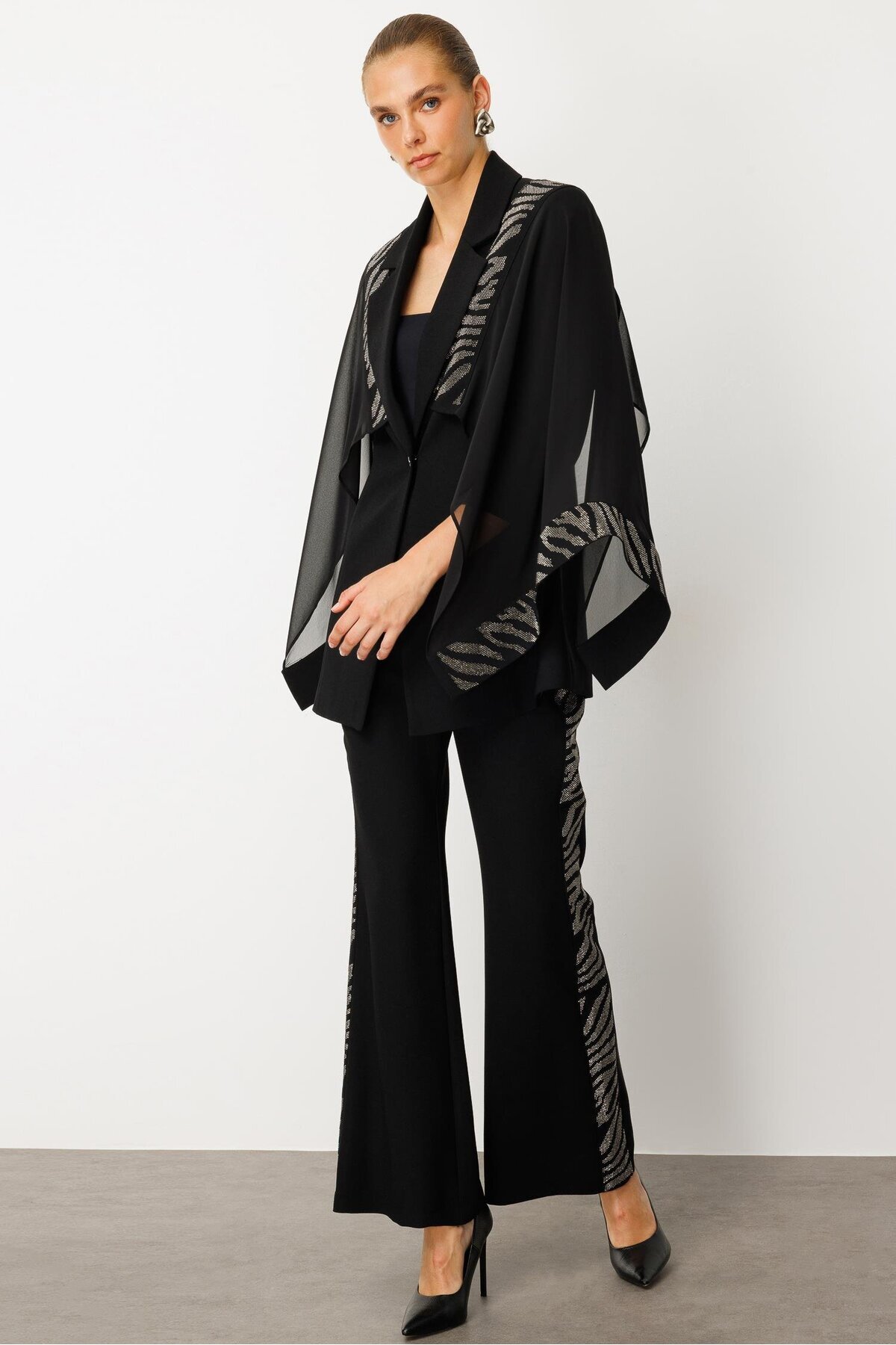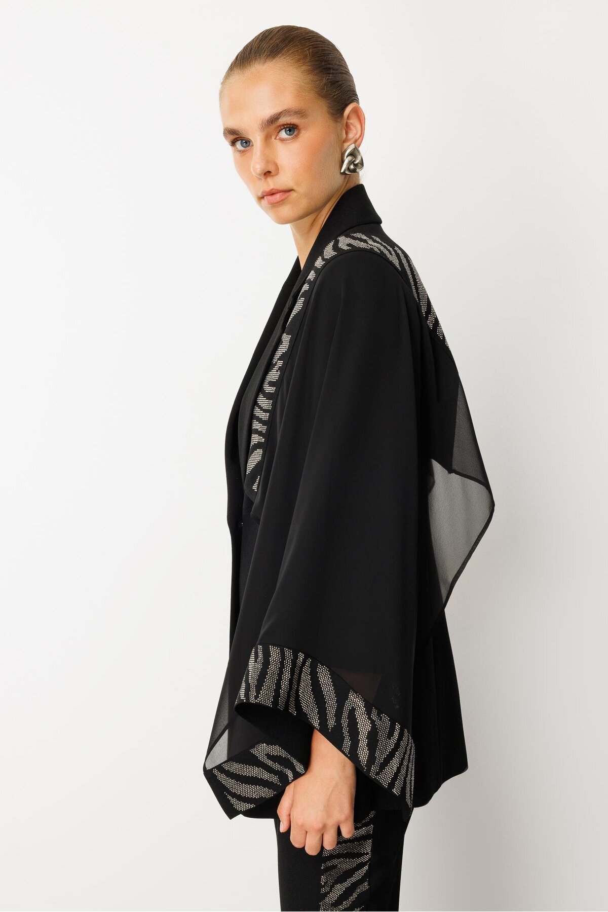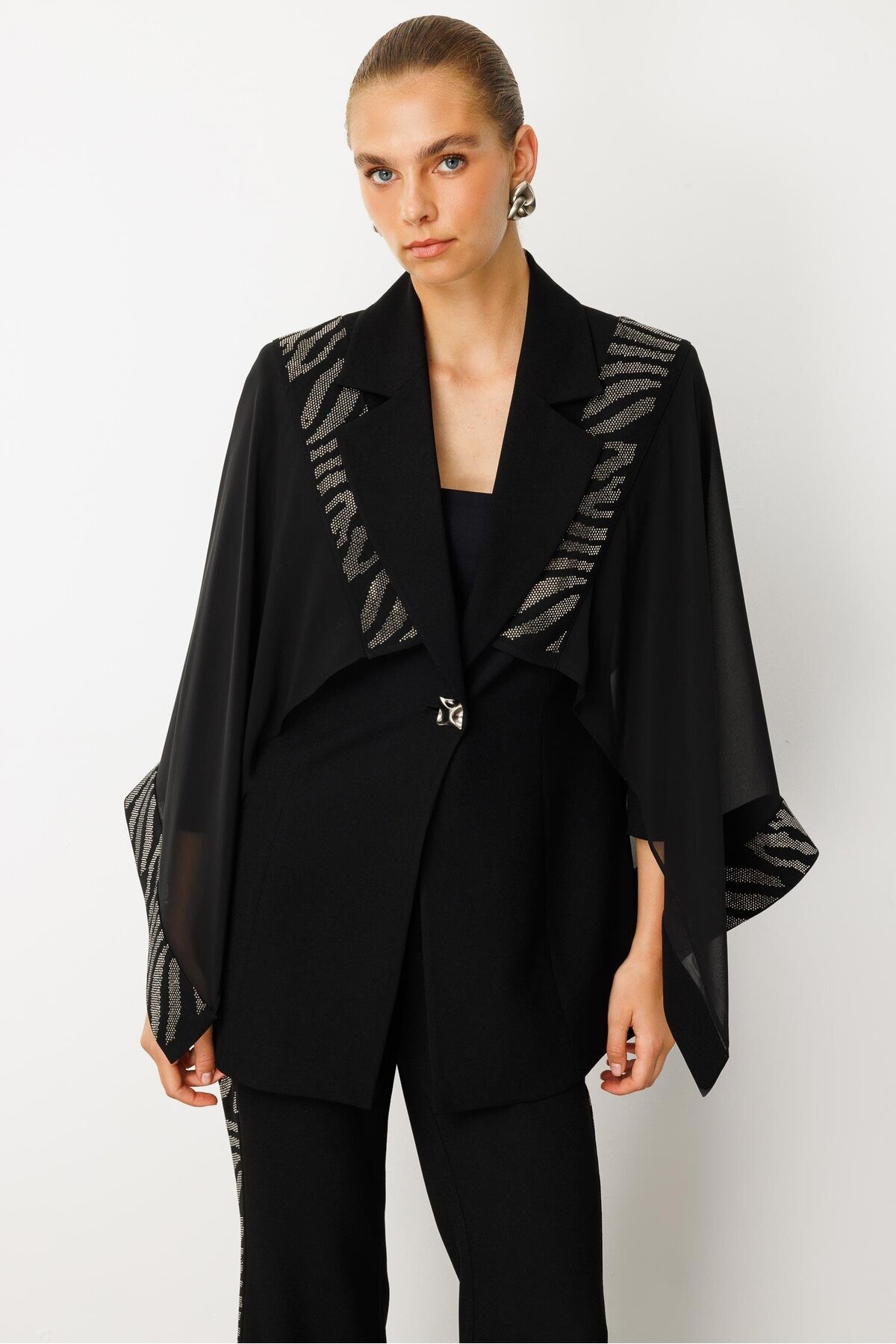 Modailgi Şifon Pelerin Detaylı Taş İşlemeli Ceket - 40065 Siyah Modailgi Şifon Pelerin Detaylı Taş İşlemeli Ceket - 40065 Siyah ILG260CKT70065 46