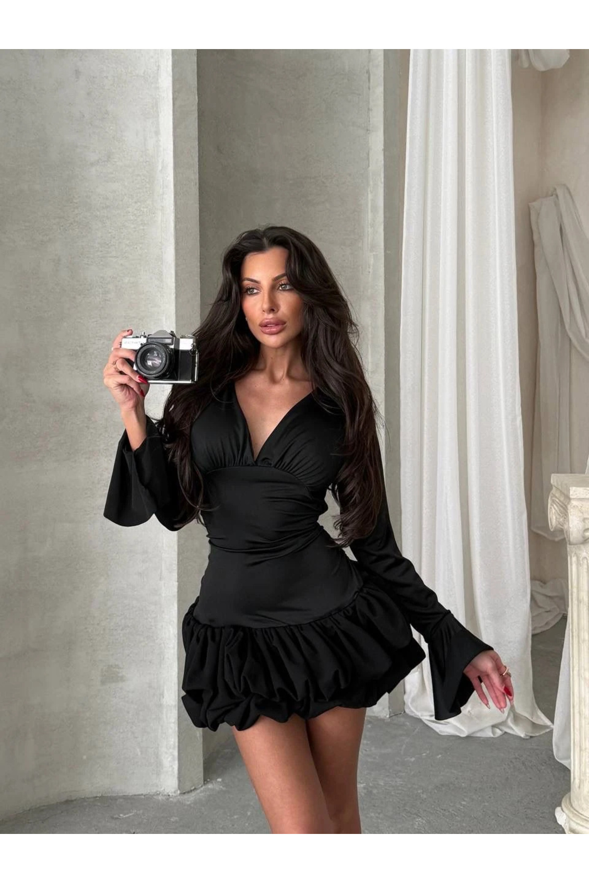 Fitilli kloş mini elbise Fitilli kloş mini elbise 2569 L