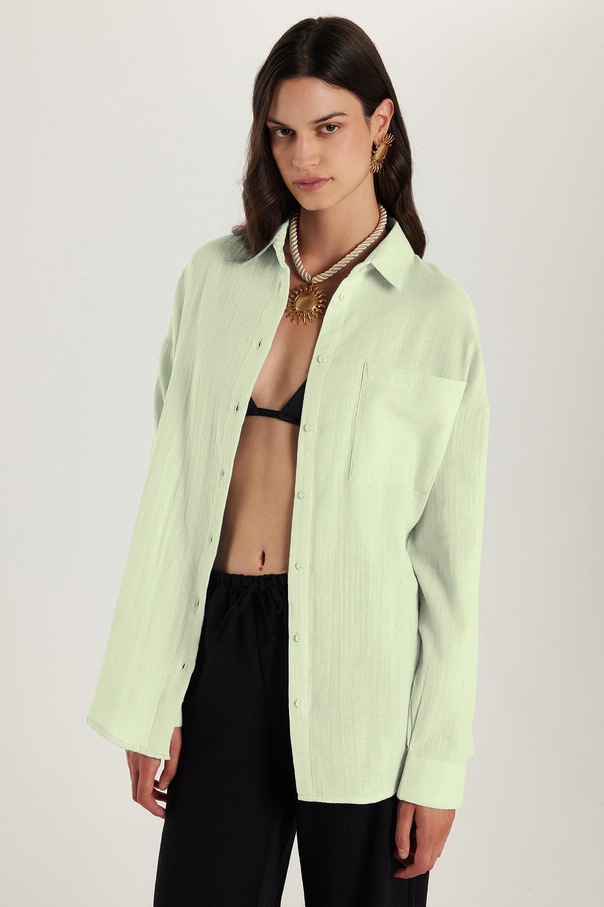 Kadın Oversize Geniş Kesim %100 Pamuk Müslin Kumaş Uzun Kollu Cepli Dokulu Açık Mint Gömlek Kadın Oversize Geniş Kesim %100 Pamuk Müslin Kumaş Uzun Kollu Cepli Dokulu Açık Mint Gömlek BYGM2551 2XL