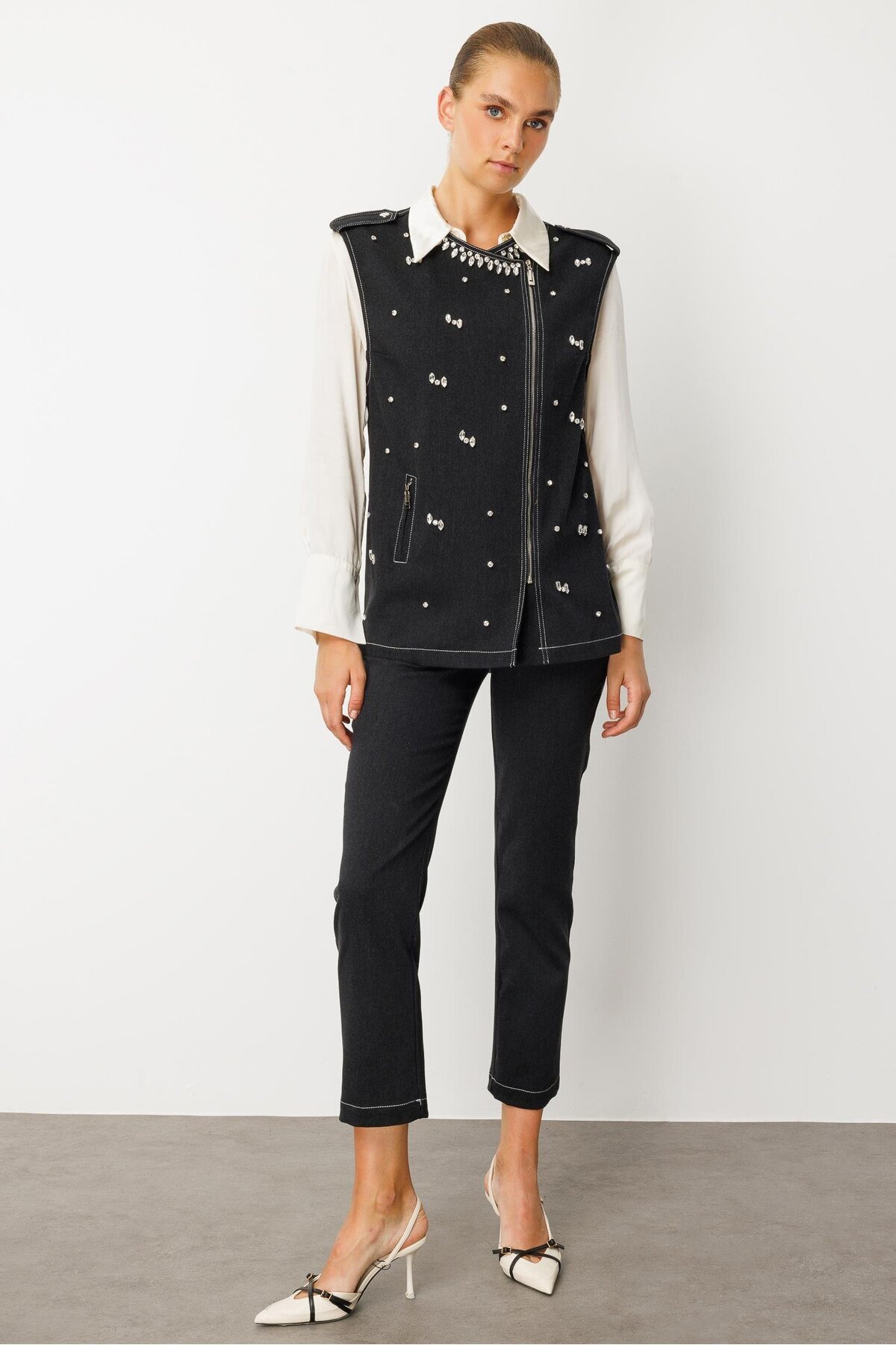 Modailgi Beyoğlu Taş Detaylı Önü Fermuarlı Omuzları Apoletli Yelek - 47002 Siyah Modailgi Beyoğlu Taş Detaylı Önü Fermuarlı Omuzları Apoletli Yelek - 47002 Siyah ILG260YLK77002 42