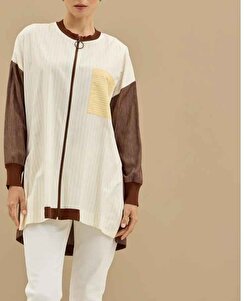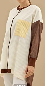 Önden Fermuarlı Çizgi Poplin Denim Mix Hırka KAHVE Önden Fermuarlı Çizgi Poplin Denim Mix Hırka KAHVE HRK.2098.01 3