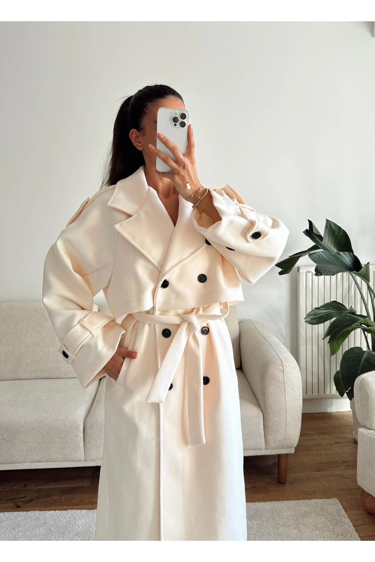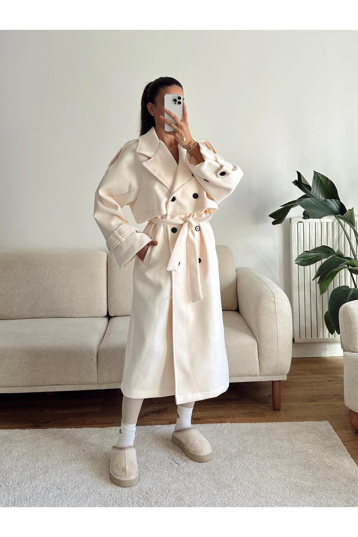 Beli Kuşaklı Kaşe Kaban - EKRU Beli Kuşaklı Kaşe Kaban - EKRU P18507S8642 L