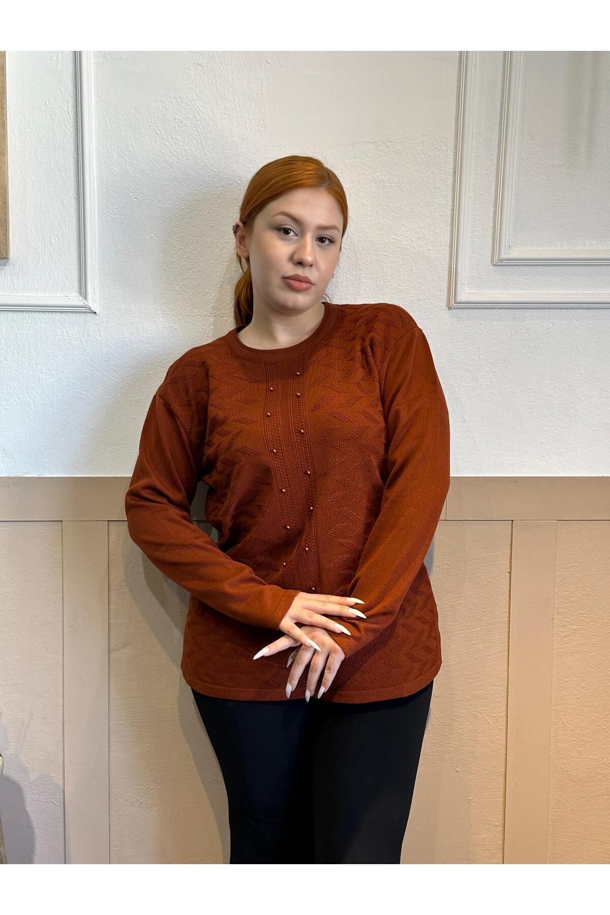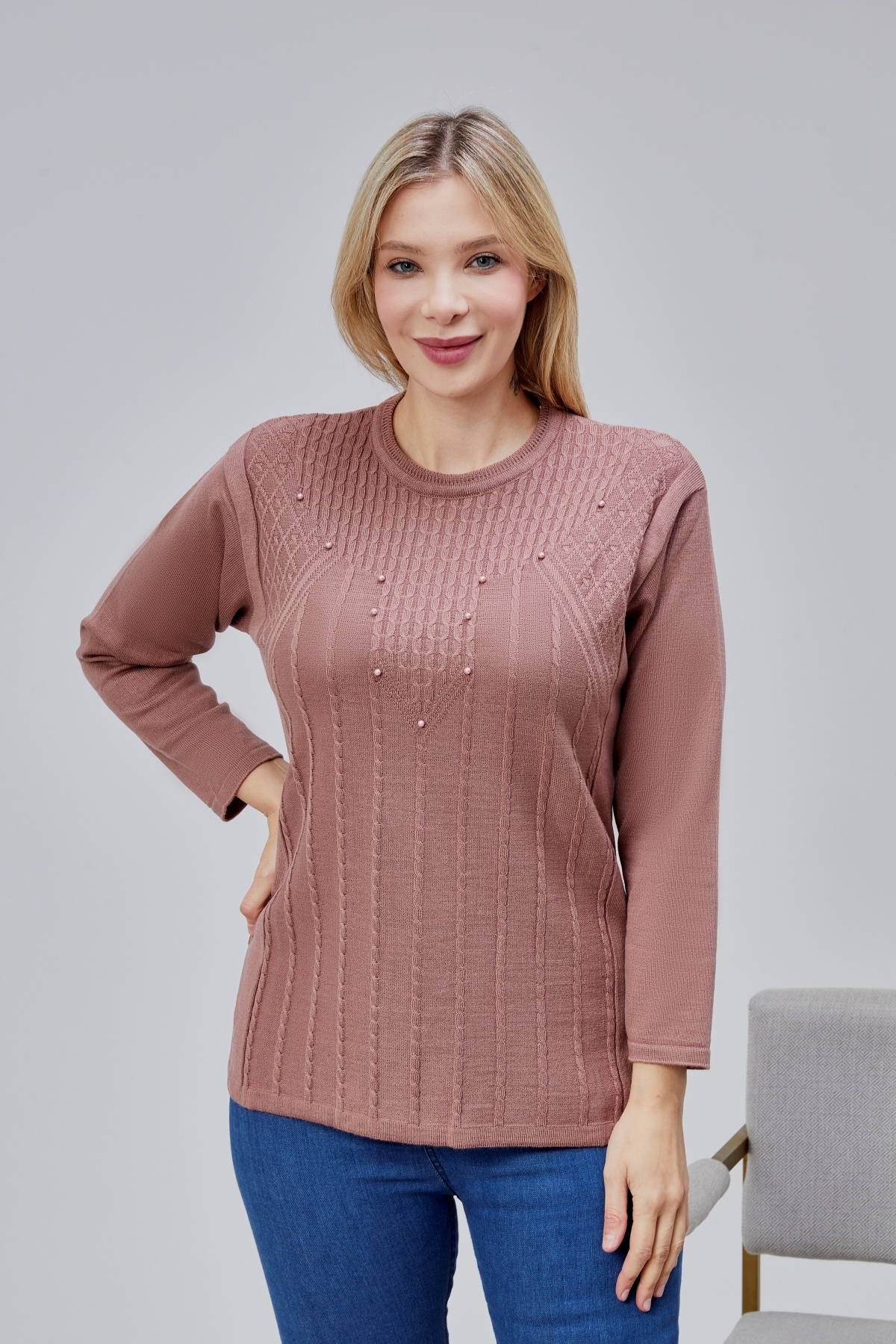 Kadın Triko Yan Yırtmaç İnci Detay Kışlık Orta Yaş Günlük Anne Bluz Kazak Kadın Triko Yan Yırtmaç İnci Detay Kışlık Orta Yaş Günlük Anne Bluz Kazak JİNX204 XL