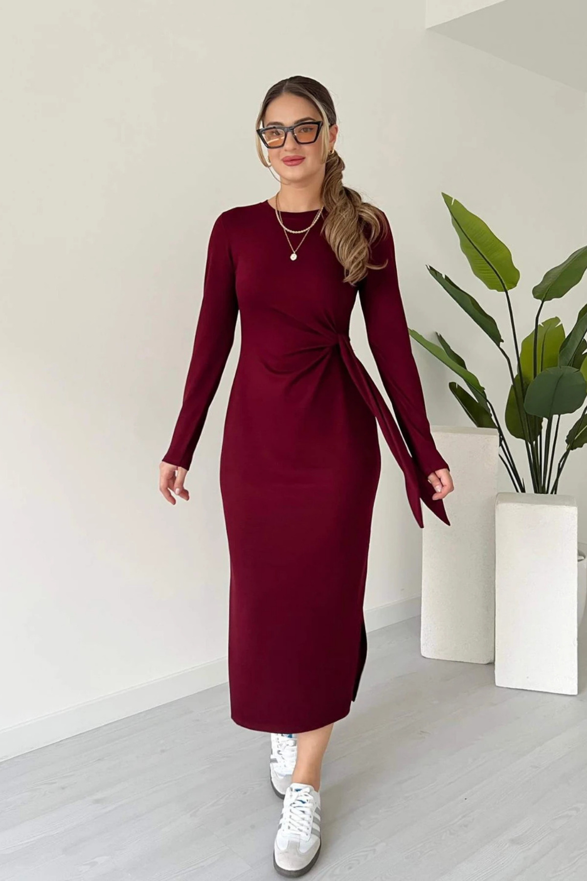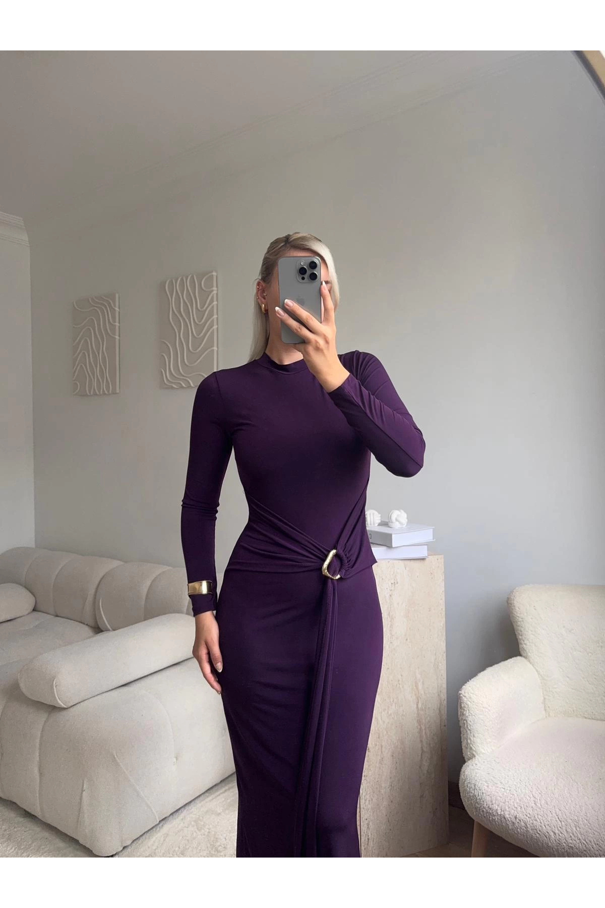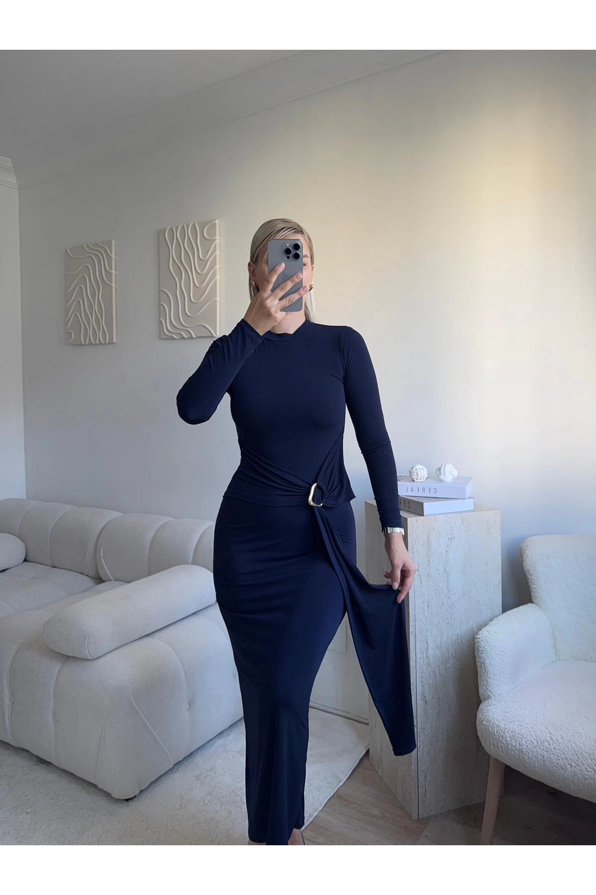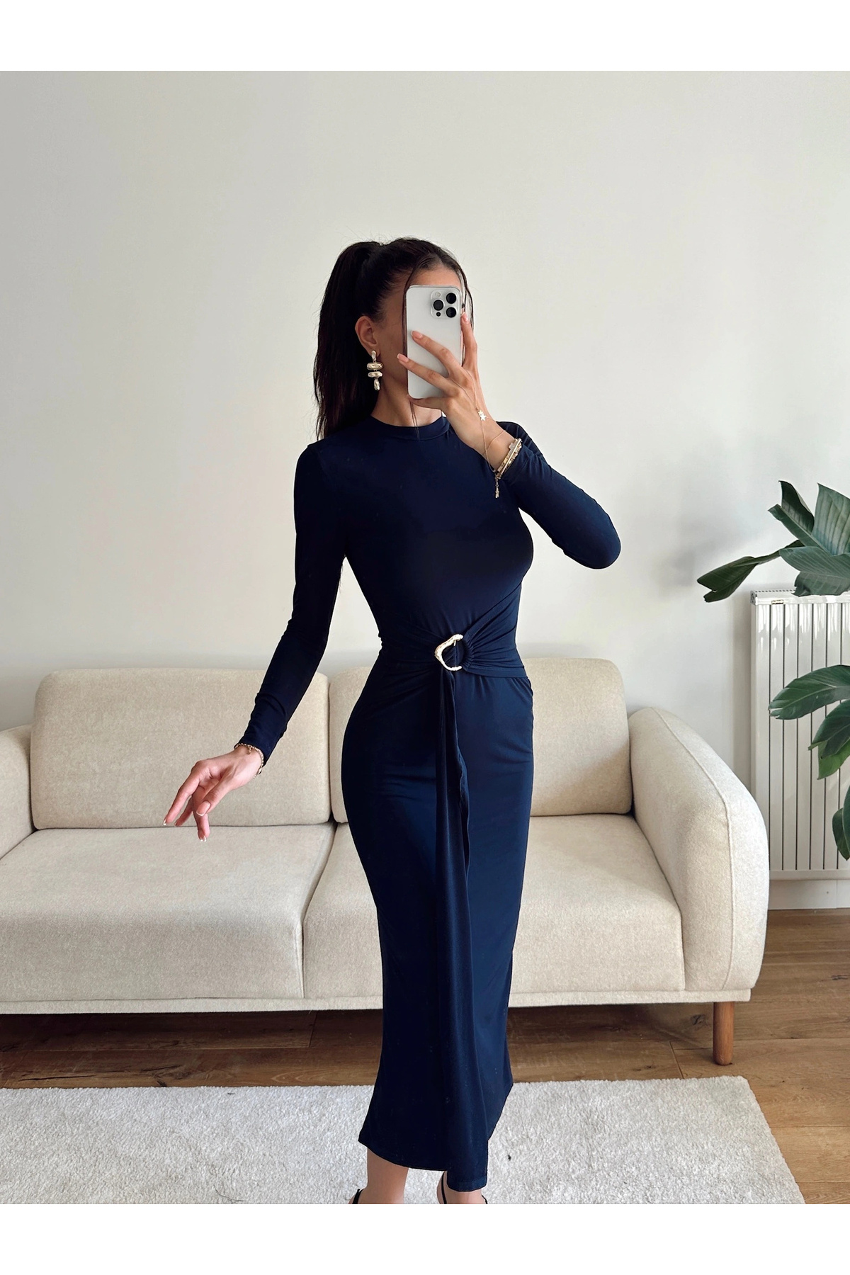 Kuşaklı Toka Detay Elbise - LACİVERT Kuşaklı Toka Detay Elbise - LACİVERT P18419S2565 L