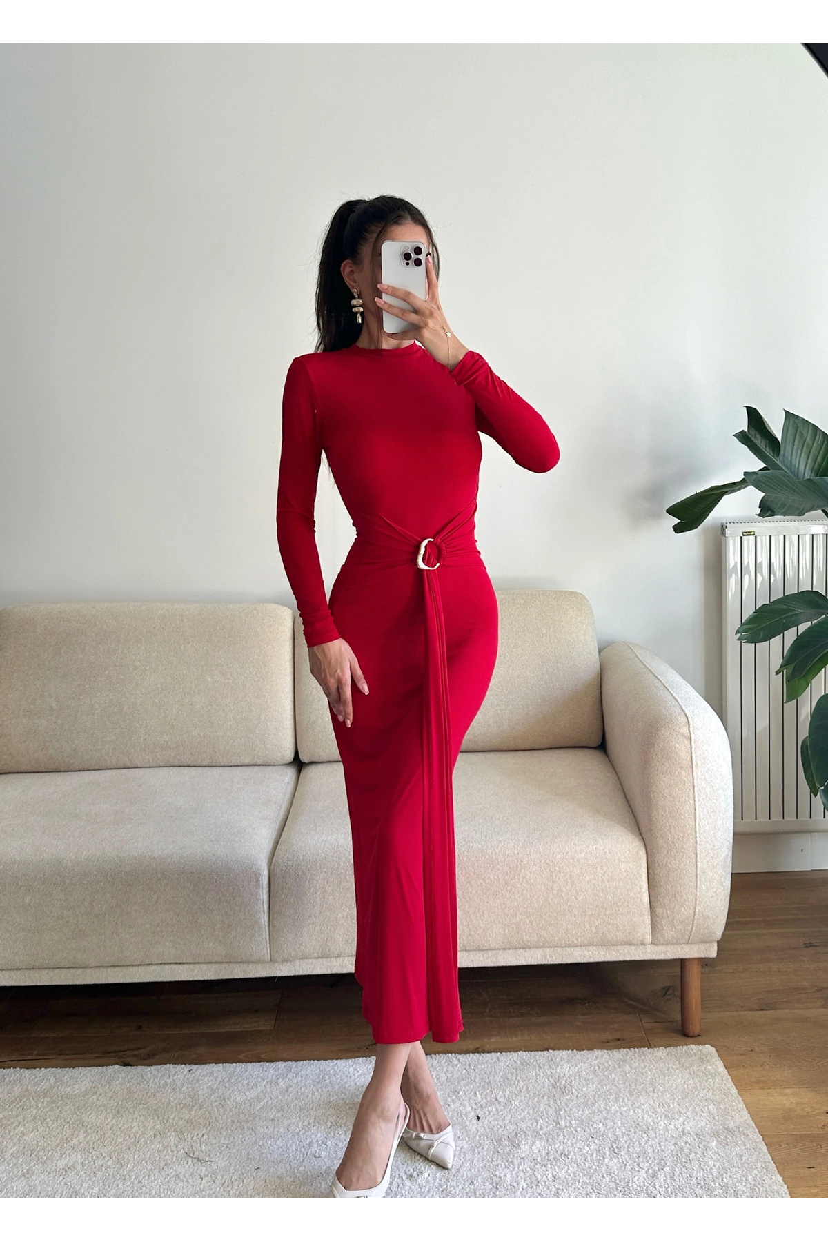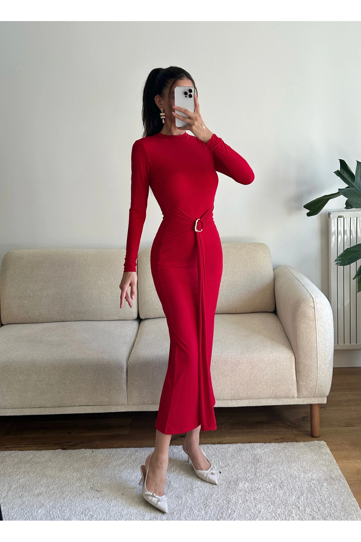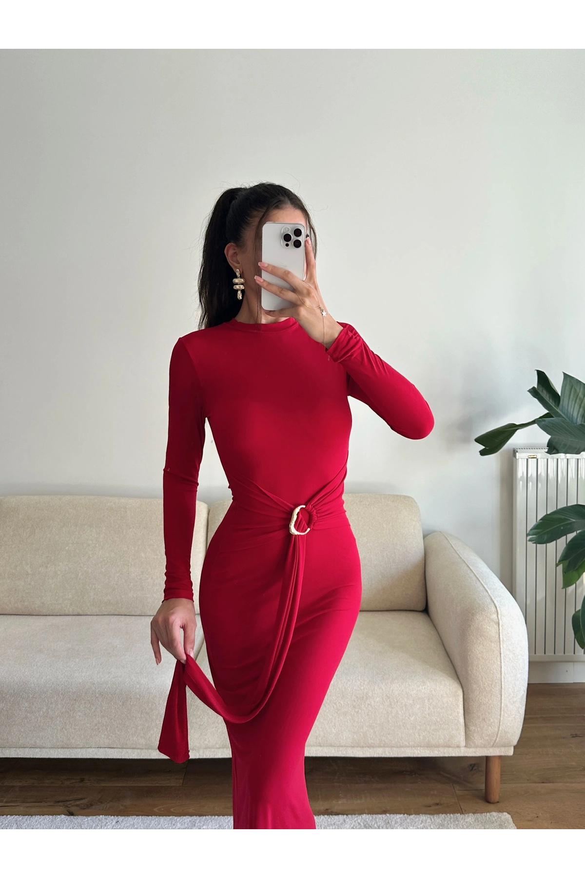Kuşaklı Toka Detay Elbise - KIRMIZI Kuşaklı Toka Detay Elbise - KIRMIZI P18418S1357 L