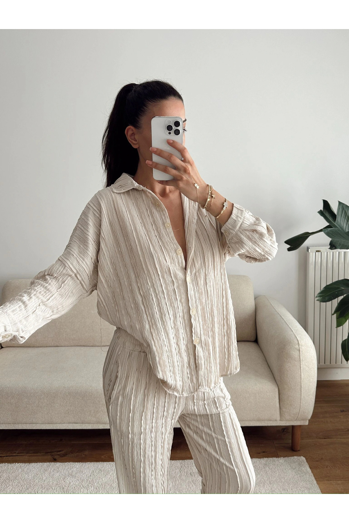 Oversize Gömlek & Pantolon Takım - BEJ Oversize Gömlek & Pantolon Takım - BEJ P18410S2278 L