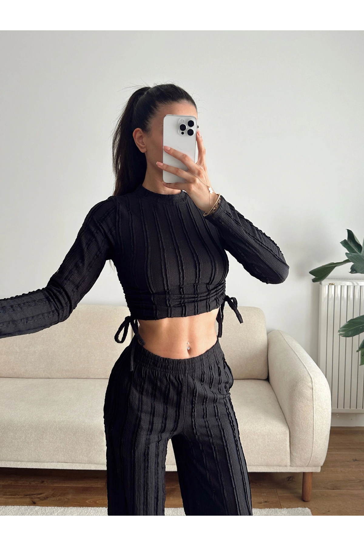 Yan Büzgü Crop & Pantolon Takım - SİYAH Yan Büzgü Crop & Pantolon Takım - SİYAH P18403S2861 L