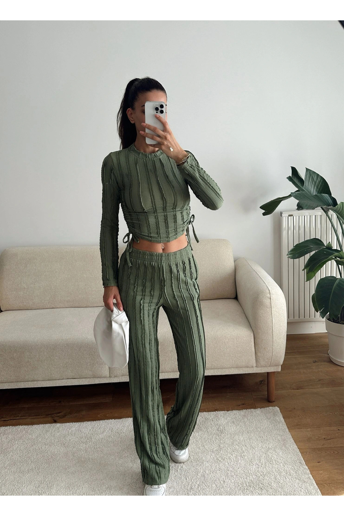 Yan Büzgü Crop & Pantolon Takım - YEŞİL Yan Büzgü Crop & Pantolon Takım - YEŞİL P18404S1141 L