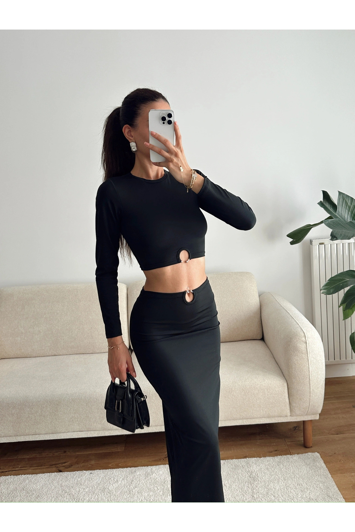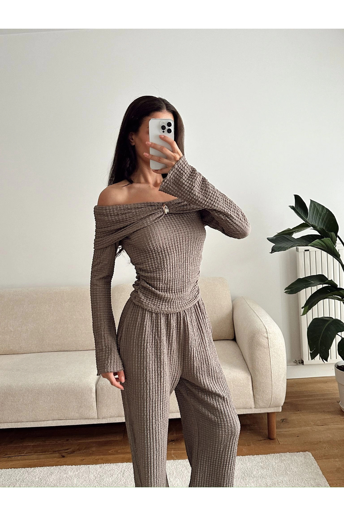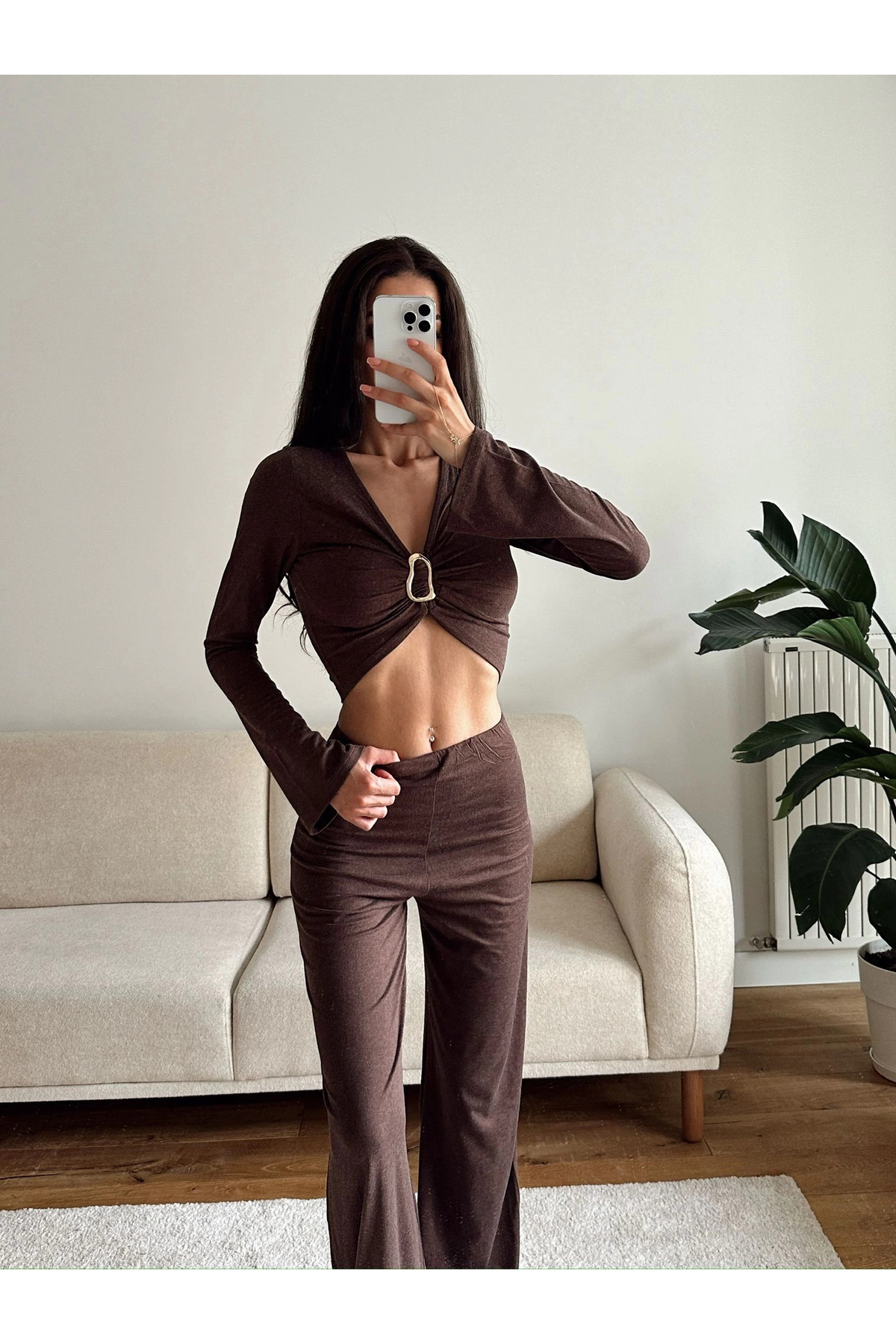 Tokalı Kruvaze Crop & Pantolon Takım - KAHVE Tokalı Kruvaze Crop & Pantolon Takım - KAHVE P18395S6430 L