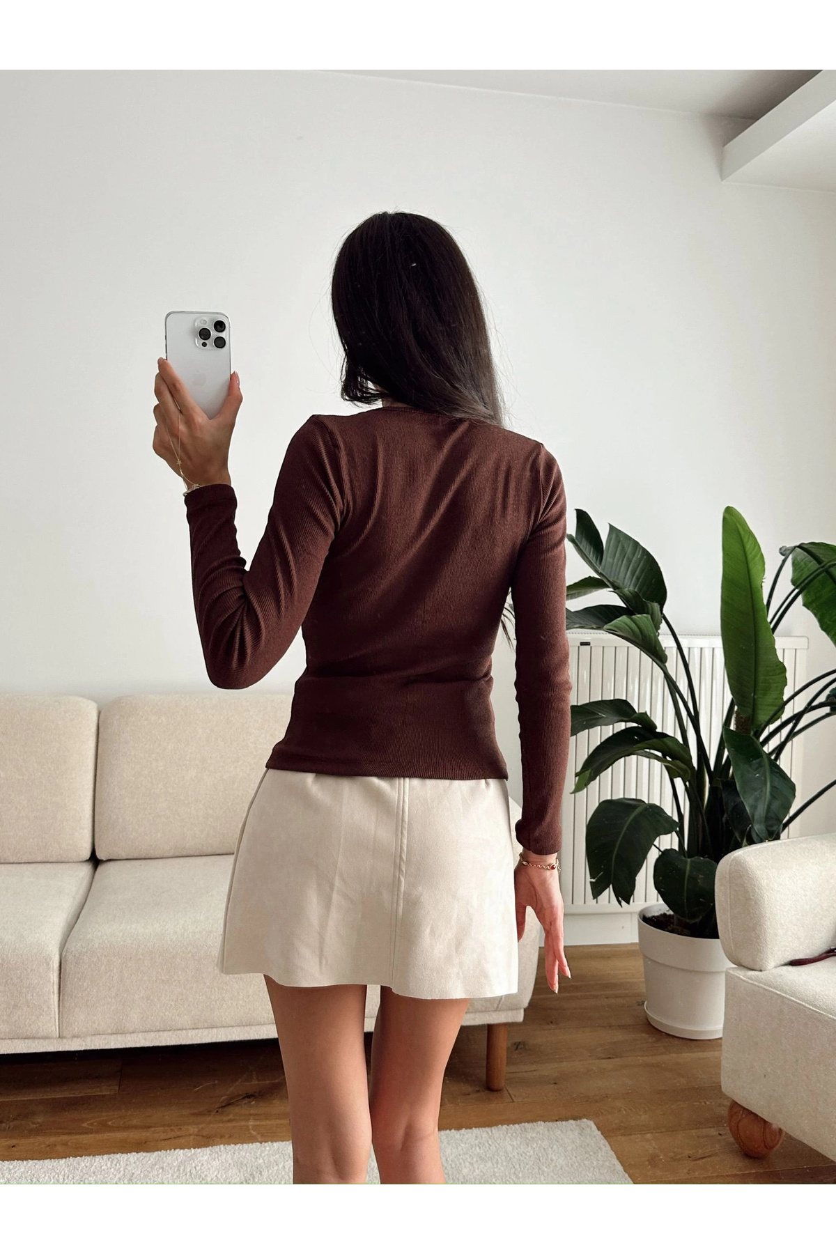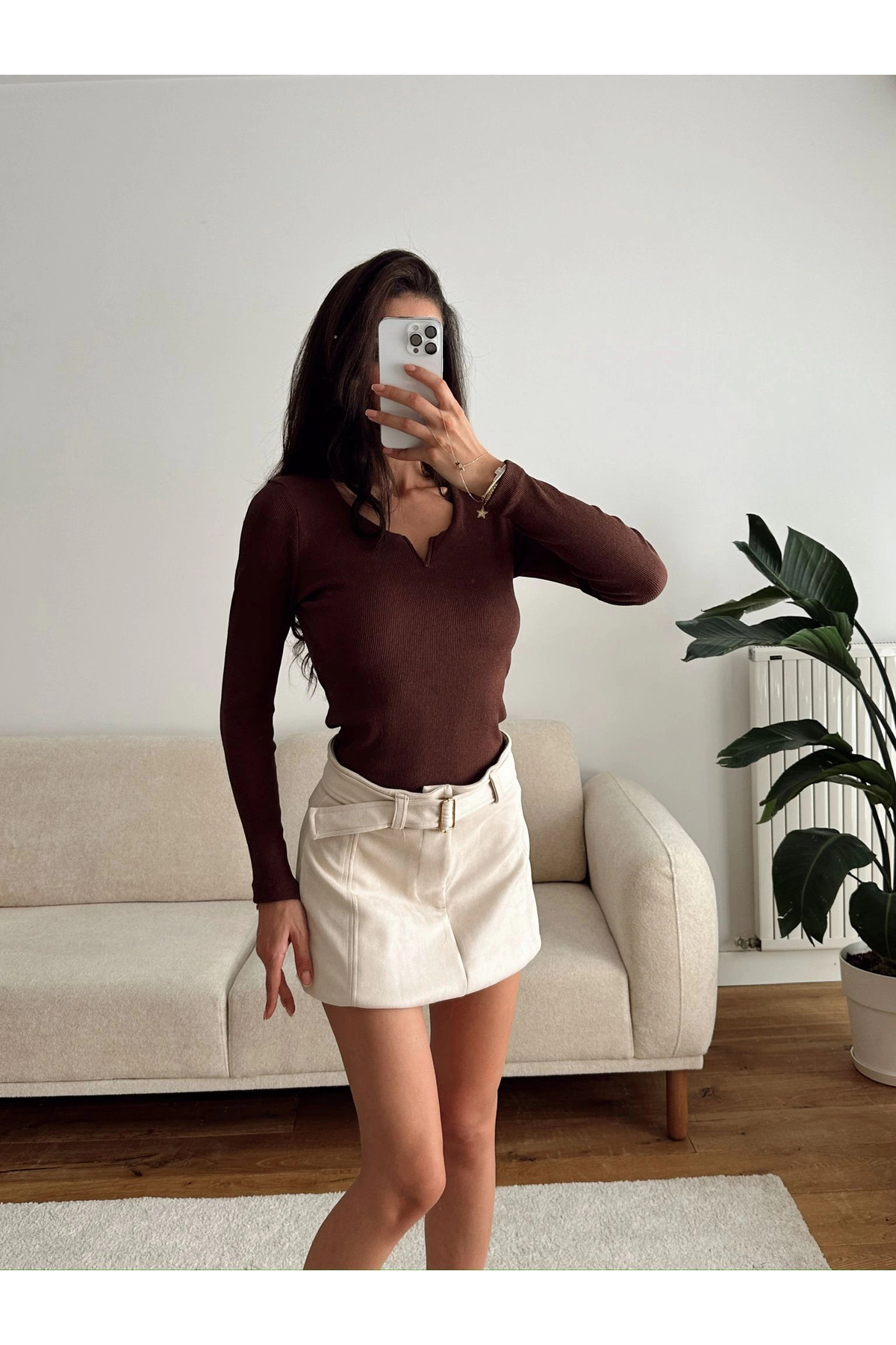 Yaka V Kesik Bluz - KAHVE Yaka V Kesik Bluz - KAHVE P18361S6857 L