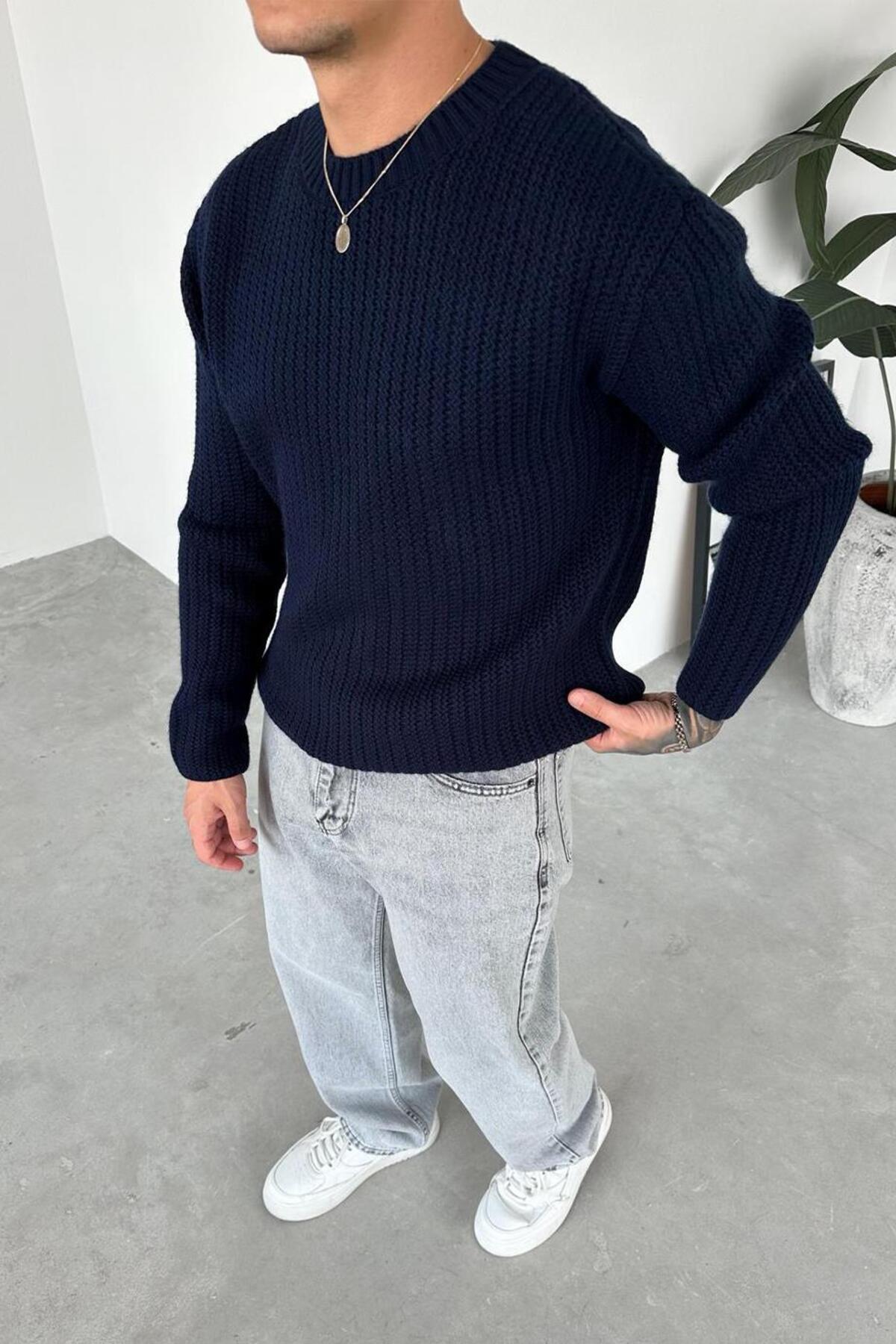 Lacivert Örme Desen Relaxed Triko Kazak Lacivert Örme Desen Relaxed Triko Kazak HF0045-MH-K XL