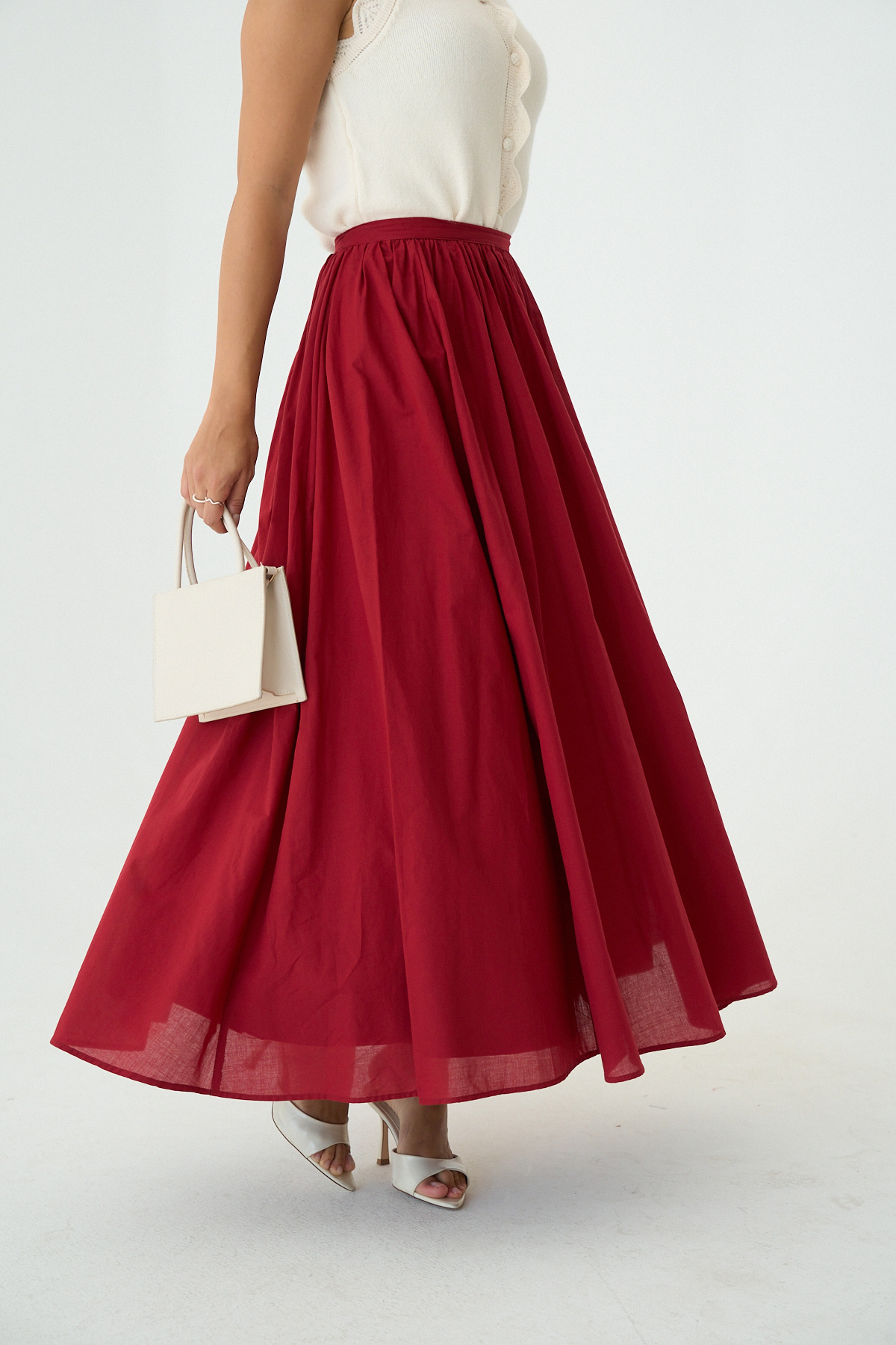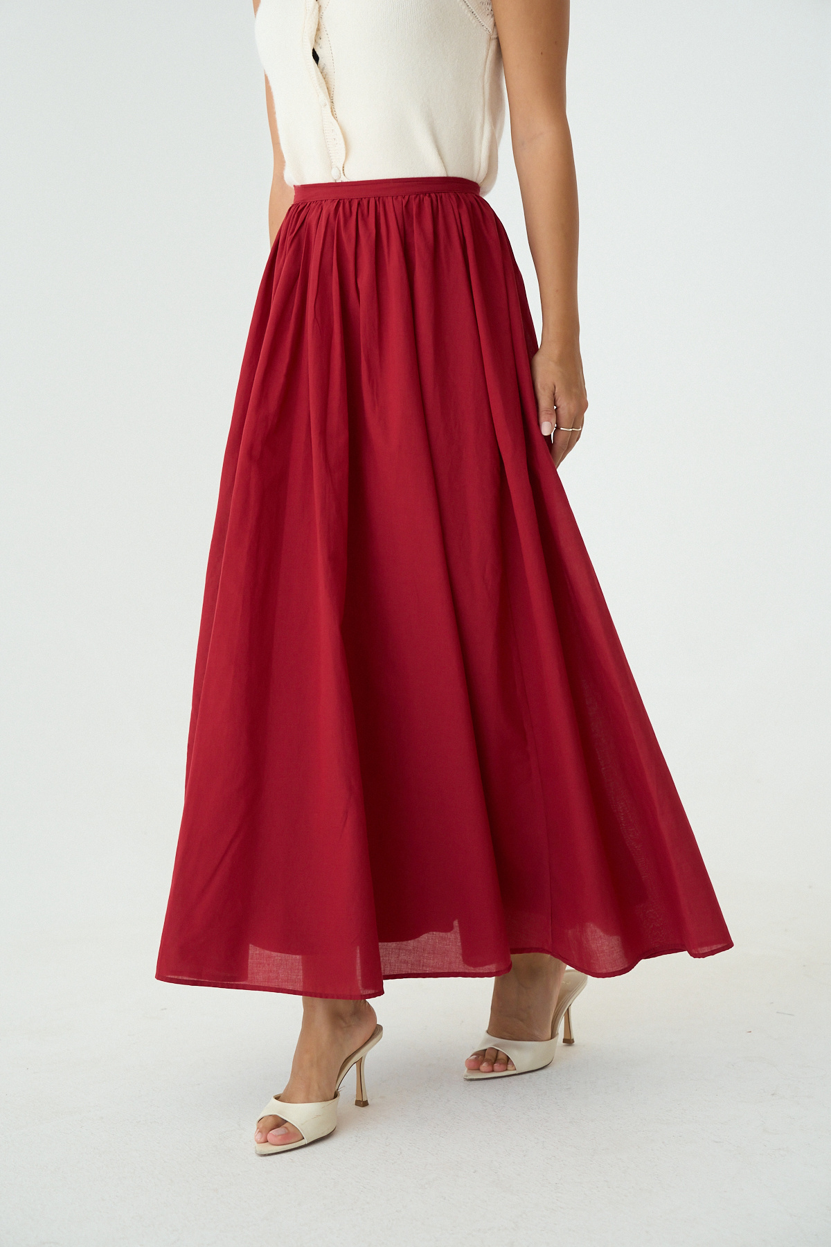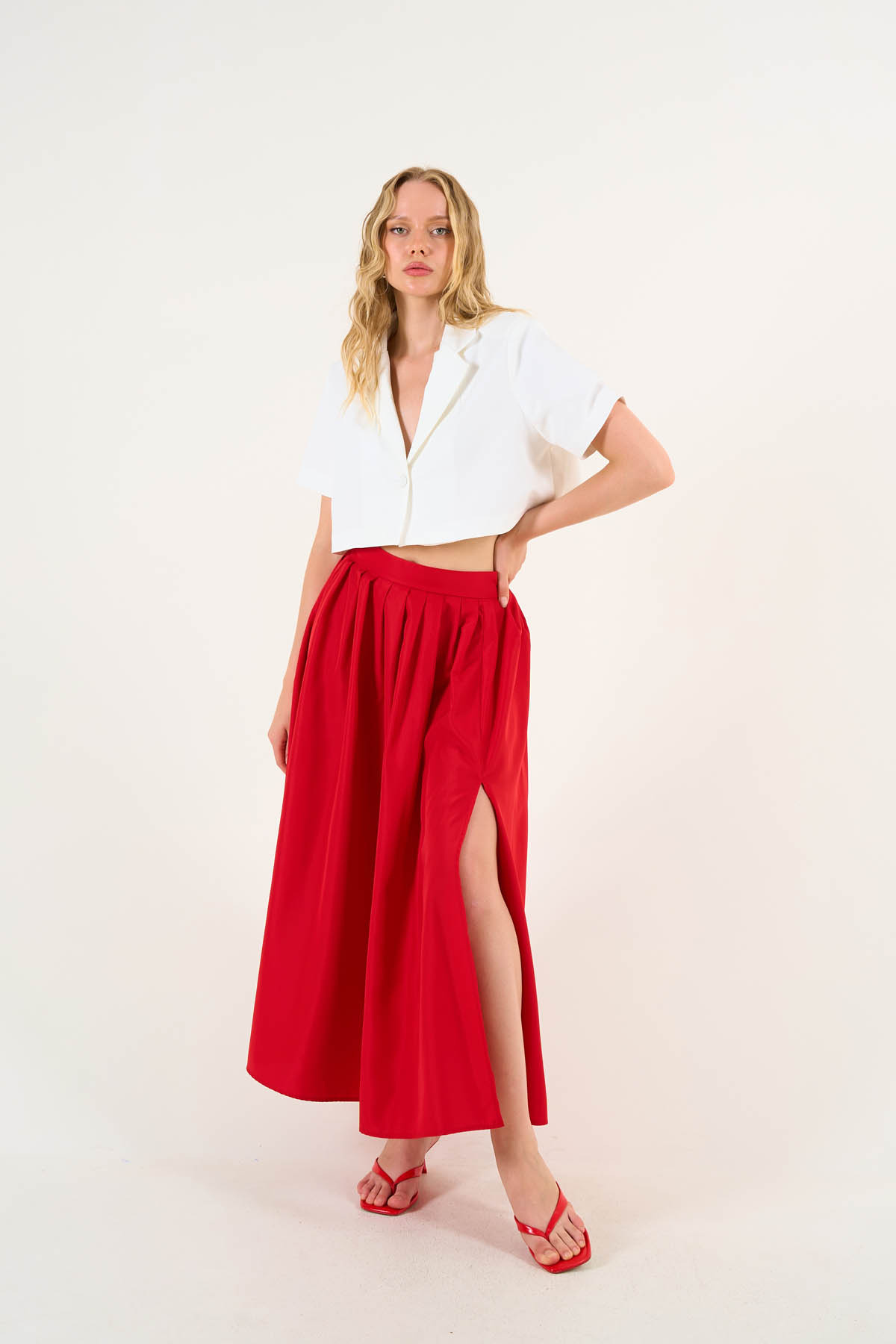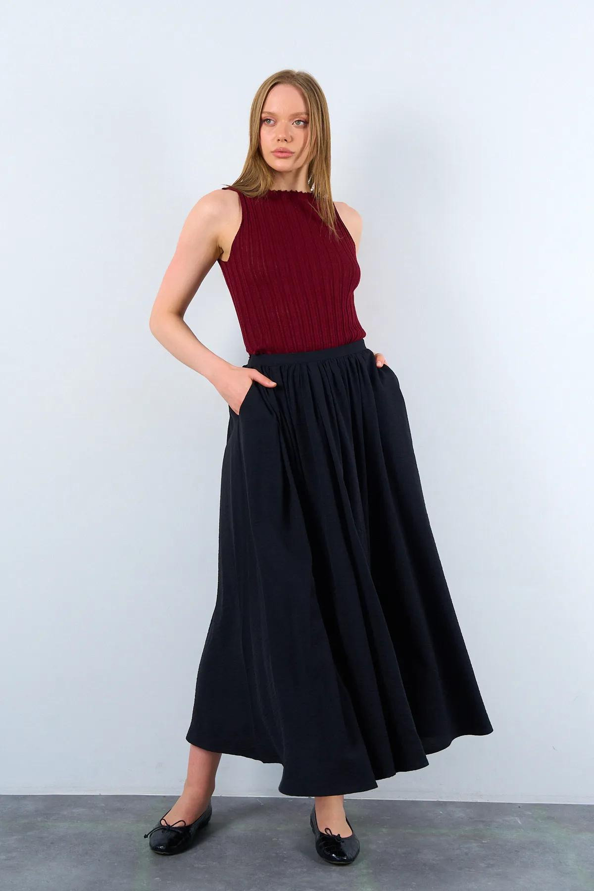 Kadın Kırmızı Uzun Astar Detaylı Pileli Maxi Etek Kadın Kırmızı Uzun Astar Detaylı Pileli Maxi Etek DE251103 L