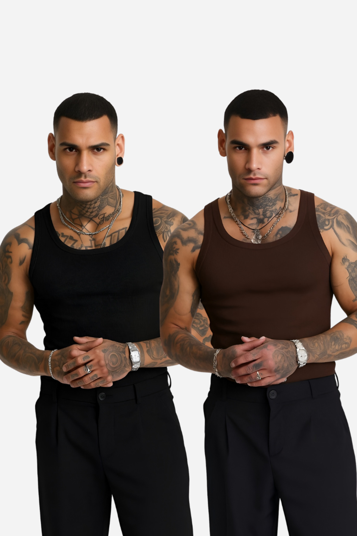 2'li Antrasit ve Krem Slim Fit Erkek Fitilli Atlet 2'li Antrasit ve Krem Slim Fit Erkek Fitilli Atlet AT101 XL