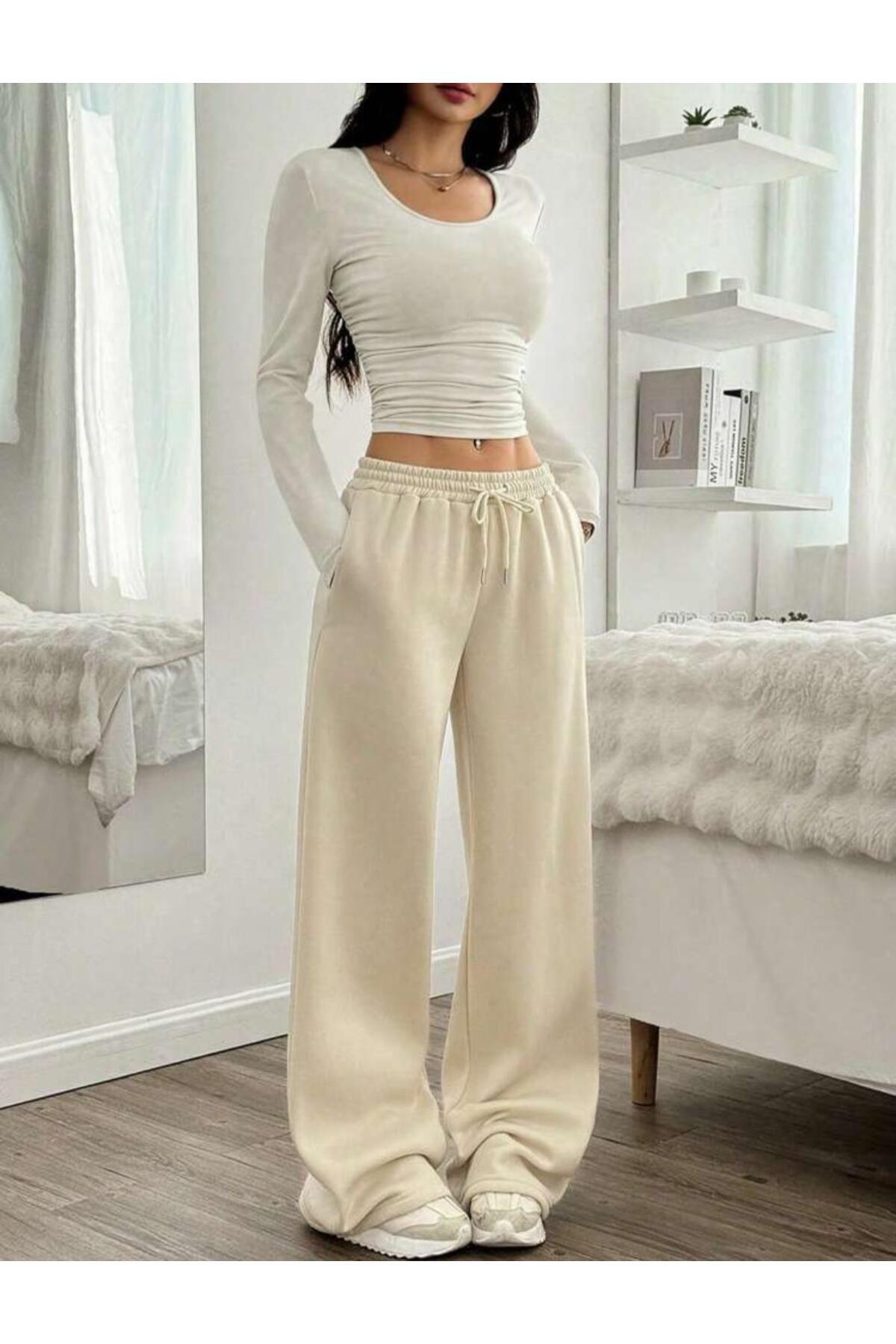 Kadın Baggy Bol Kesim Pantolon ALTI Esnek Rahat Kumaş Eşofman Altı Kadın Baggy Bol Kesim Pantolon ALTI Esnek Rahat Kumaş Eşofman Altı LEVİON3301 2XS/XS