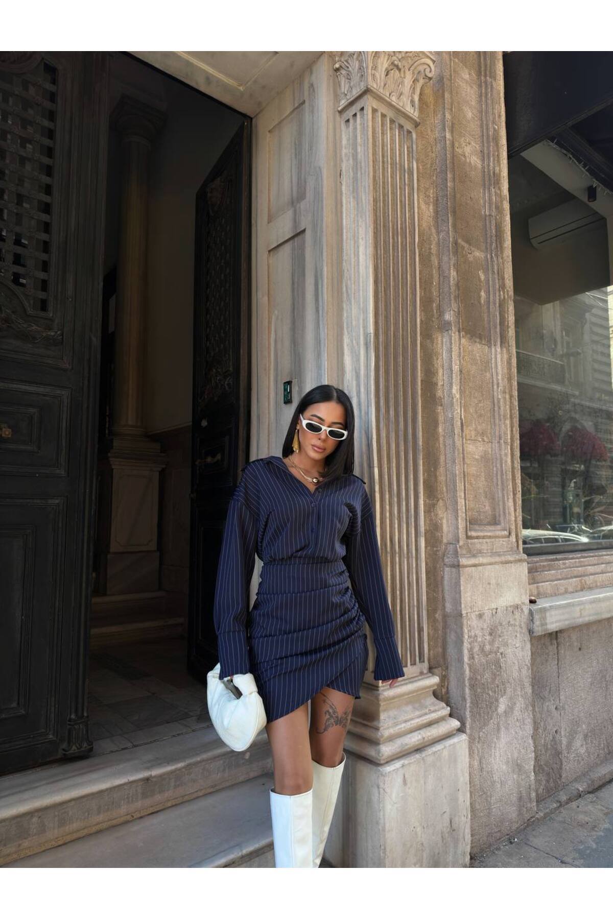 Gömlek Yakalı Uzun Kollu Fırfırlı Mini Elbise Gömlek Yakalı Uzun Kollu Fırfırlı Mini Elbise MD30NHTE XXS