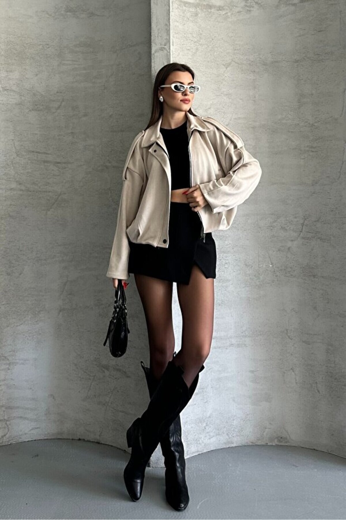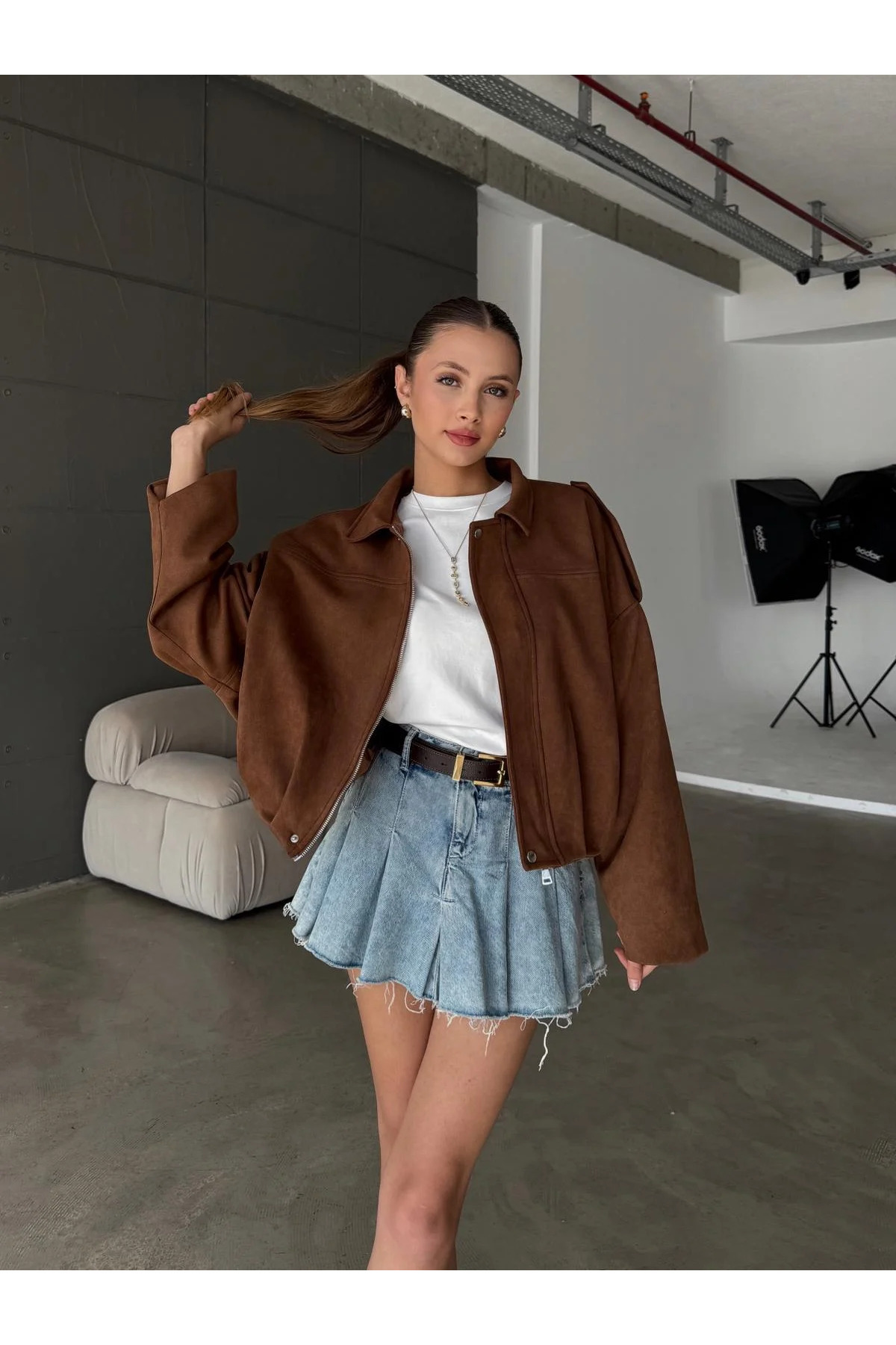 Kadın New LÜX Soft Oversize Bomber Süet Ceket Kadın New LÜX Soft Oversize Bomber Süet Ceket By Maysa 25093 XL
