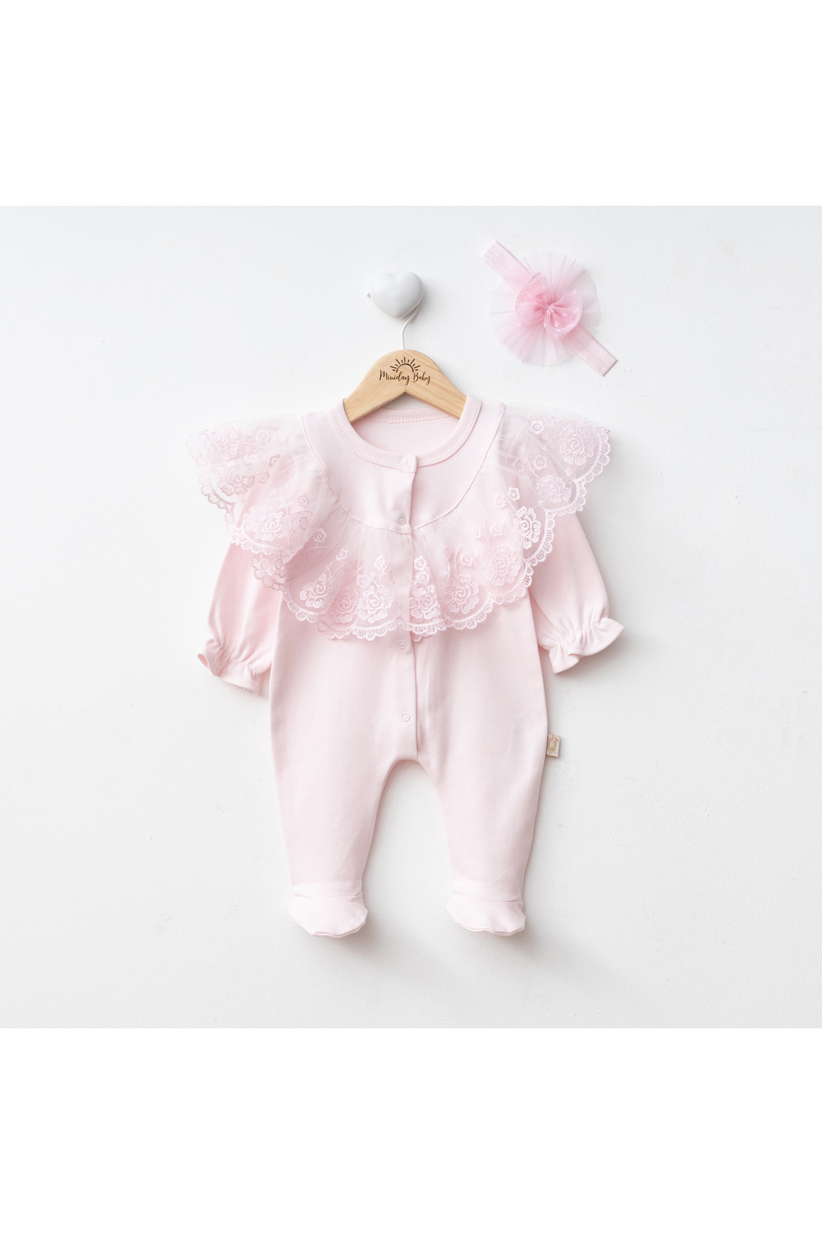 Kız Bebek Mevlütlük Tulum Dantelli Bandanalı Kız Bebek Mevlütlük Tulum Dantelli Bandanalı TK1049 3-6 AY