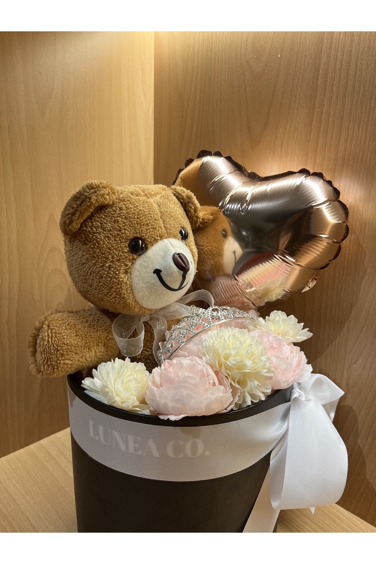 Peluş Ayıcık Kutu Buket Taç Sevgiliye Hediye Silindir Kutuda kasımpatı şakayık balon Peluş Ayıcık Kutu Buket Taç Sevgiliye Hediye Silindir Kutuda kasımpatı şakayık balon TY026ZMC0008 تک سایز