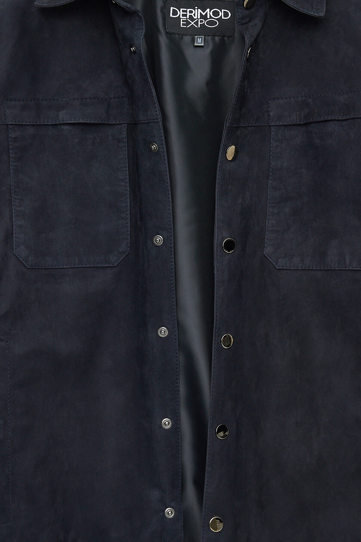 Enzo Erkek Lacivert Gömlek Yaka Süet Deri Ceket 24WGE652410 Enzo Erkek Lacivert Gömlek Yaka Süet Deri Ceket 24WGE652410 L