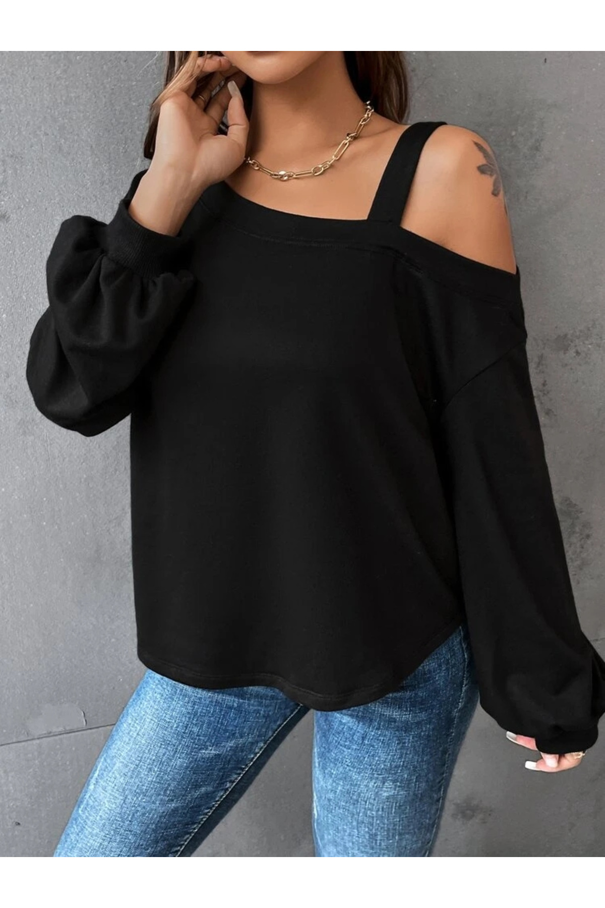 Tek Omuz Açık Çapraz Askılı Viskon İki İplik Bluz - Siyah Tek Omuz Açık Çapraz Askılı Viskon İki İplik Bluz - Siyah JS72337 2XL-3XL