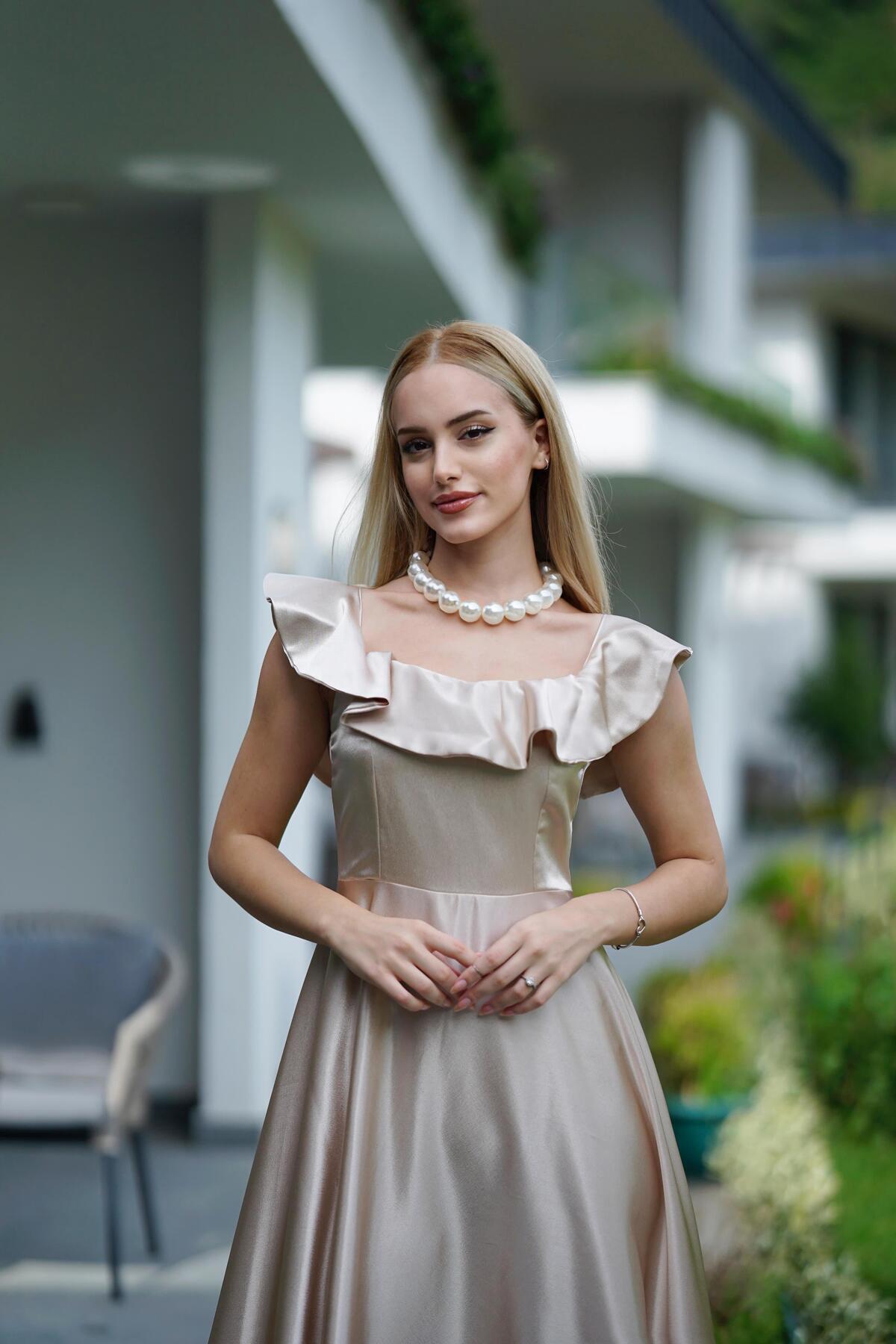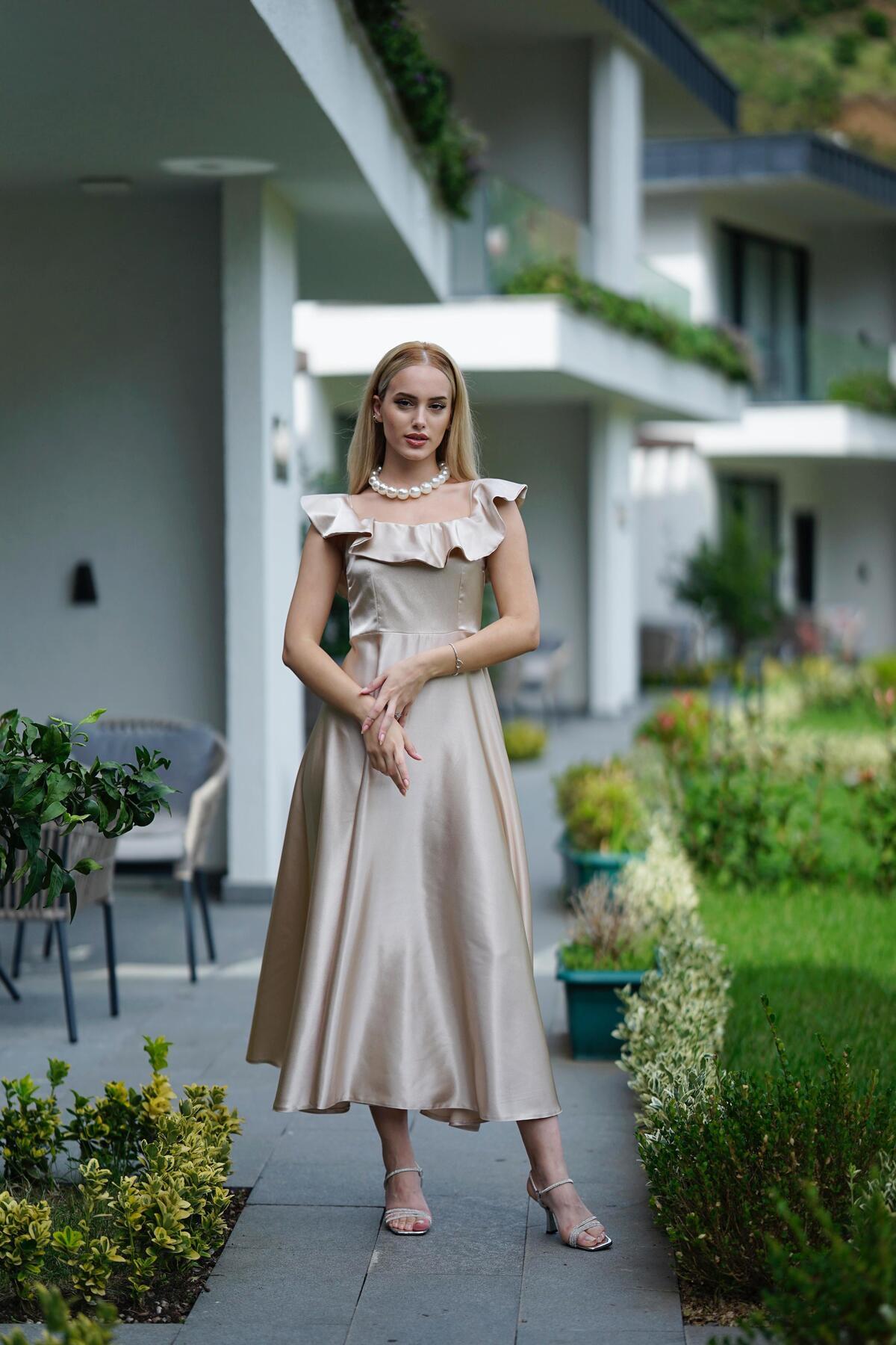 KADIN BEJ YAKASI FIRFIR DETAYLI FLORA ABİYE/ELBİSE KADIN BEJ YAKASI FIRFIR DETAYLI FLORA ABİYE/ELBİSE FLORABY 44