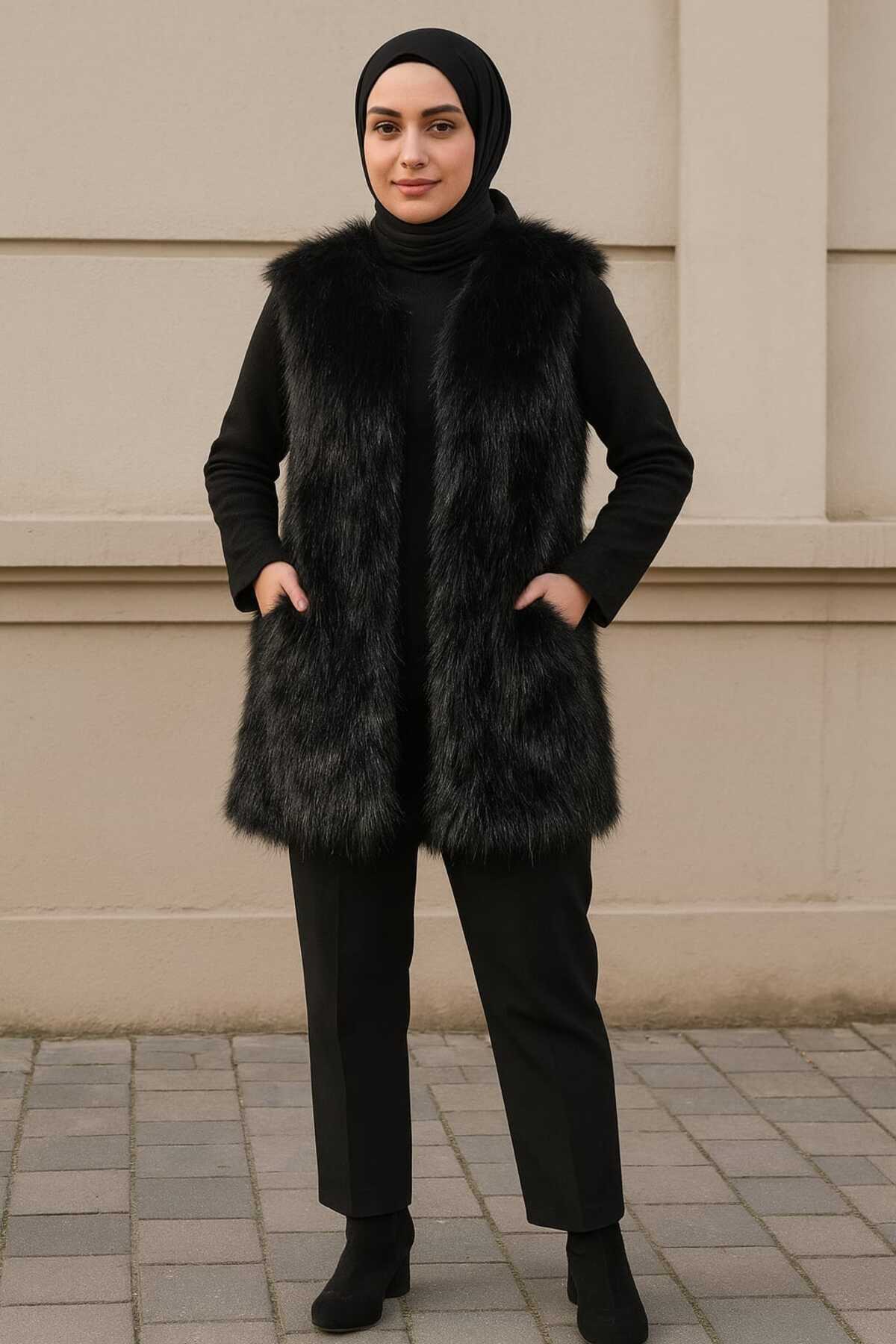 Kadın Yandan Gizli Cep Detay Kürk Peluş Yelek Kadın Yandan Gizli Cep Detay Kürk Peluş Yelek ECK5625 L