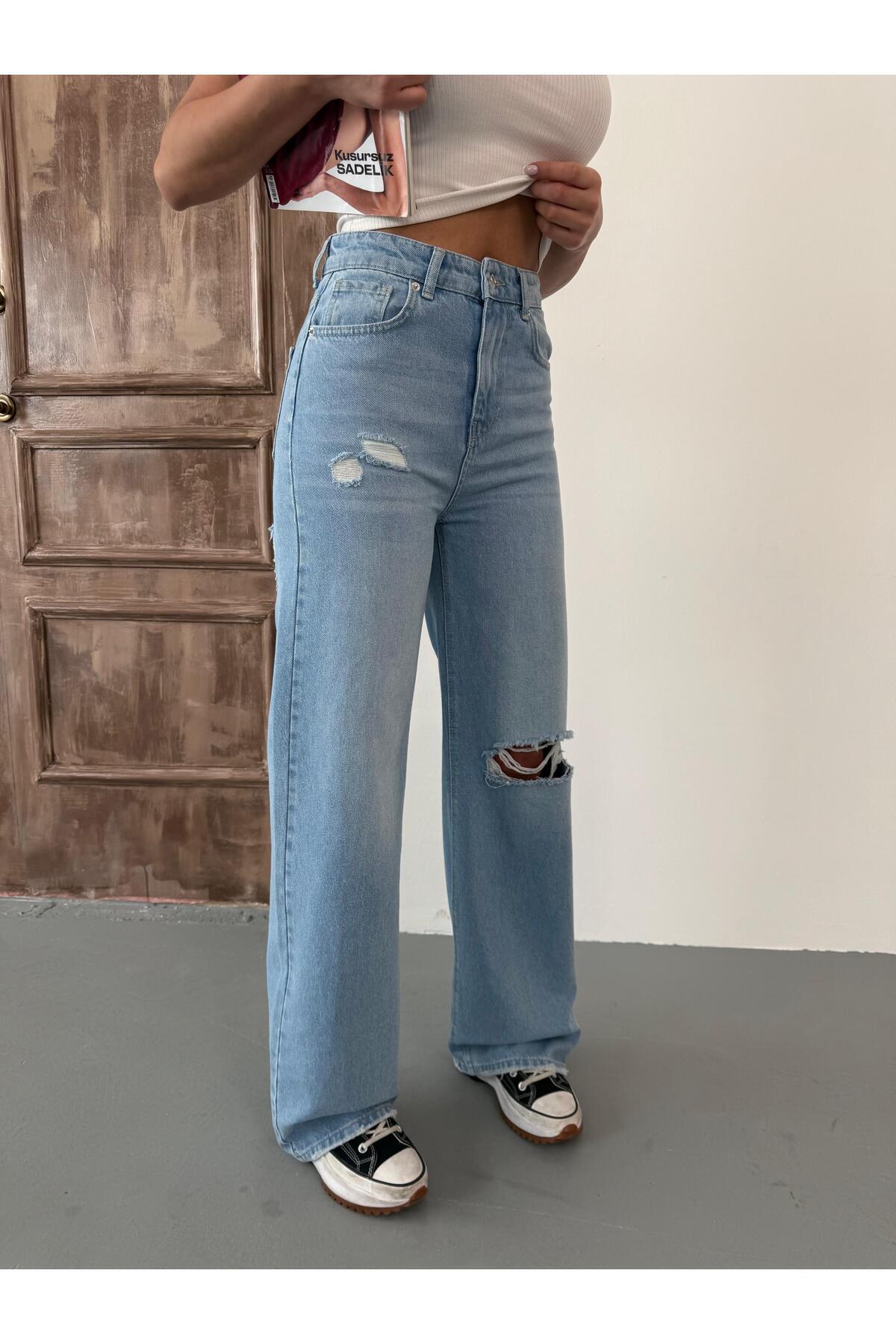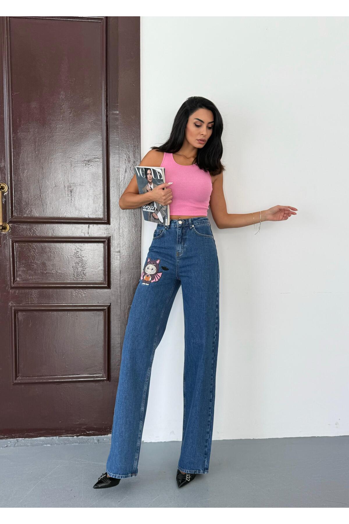 Kadın Nakış detaylı wide-leg jean kot pantolon Kadın Nakış detaylı wide-leg jean kot pantolon 2535NAKIŞ 42