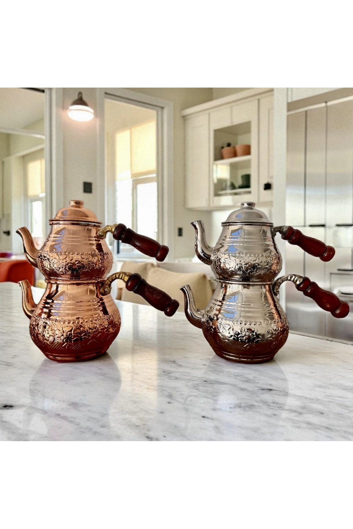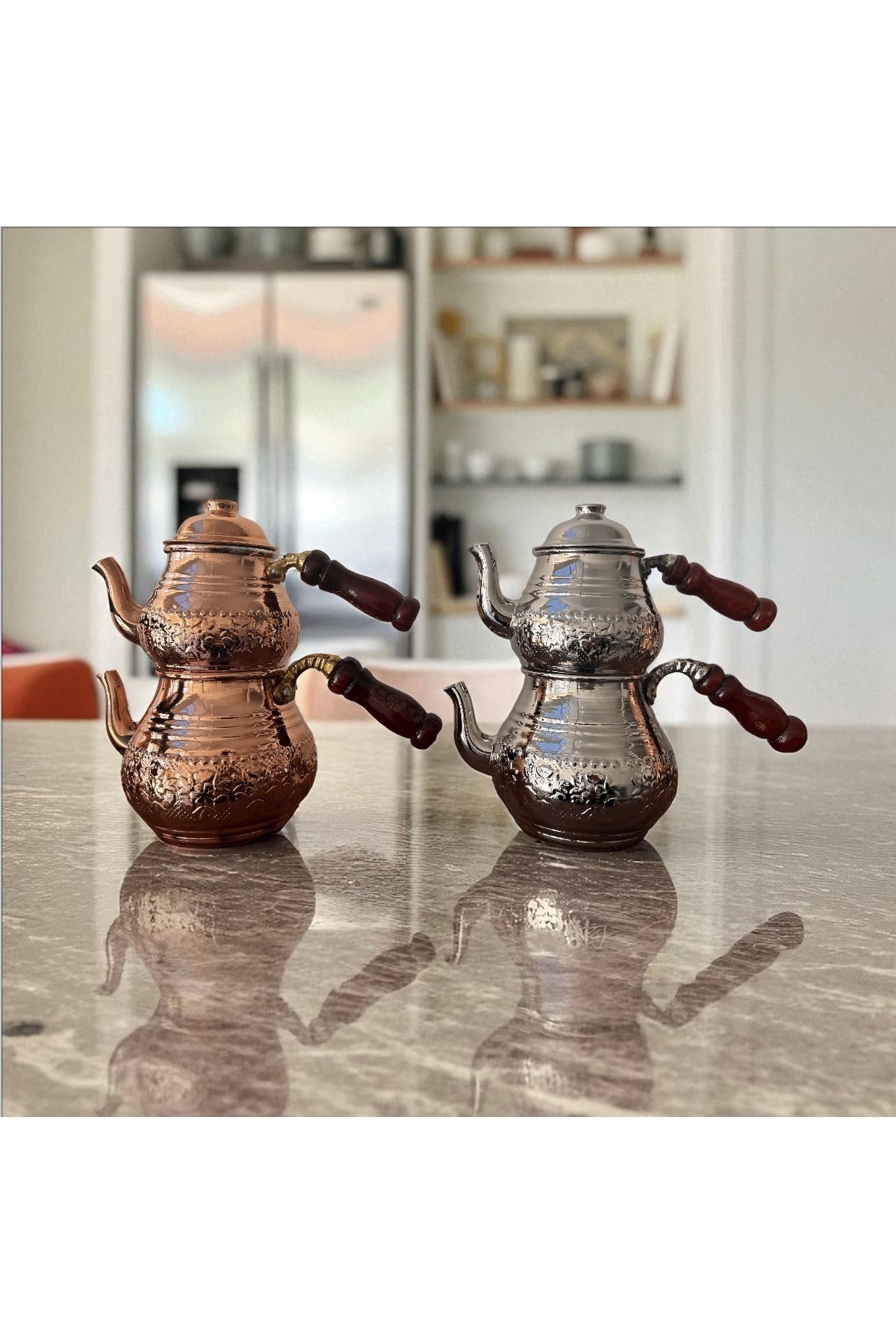 Bakır çaydanlık Küçük boy Dövme çiçek motifli Bakır çaydanlık Küçük boy Dövme çiçek motifli çökem تک سایز