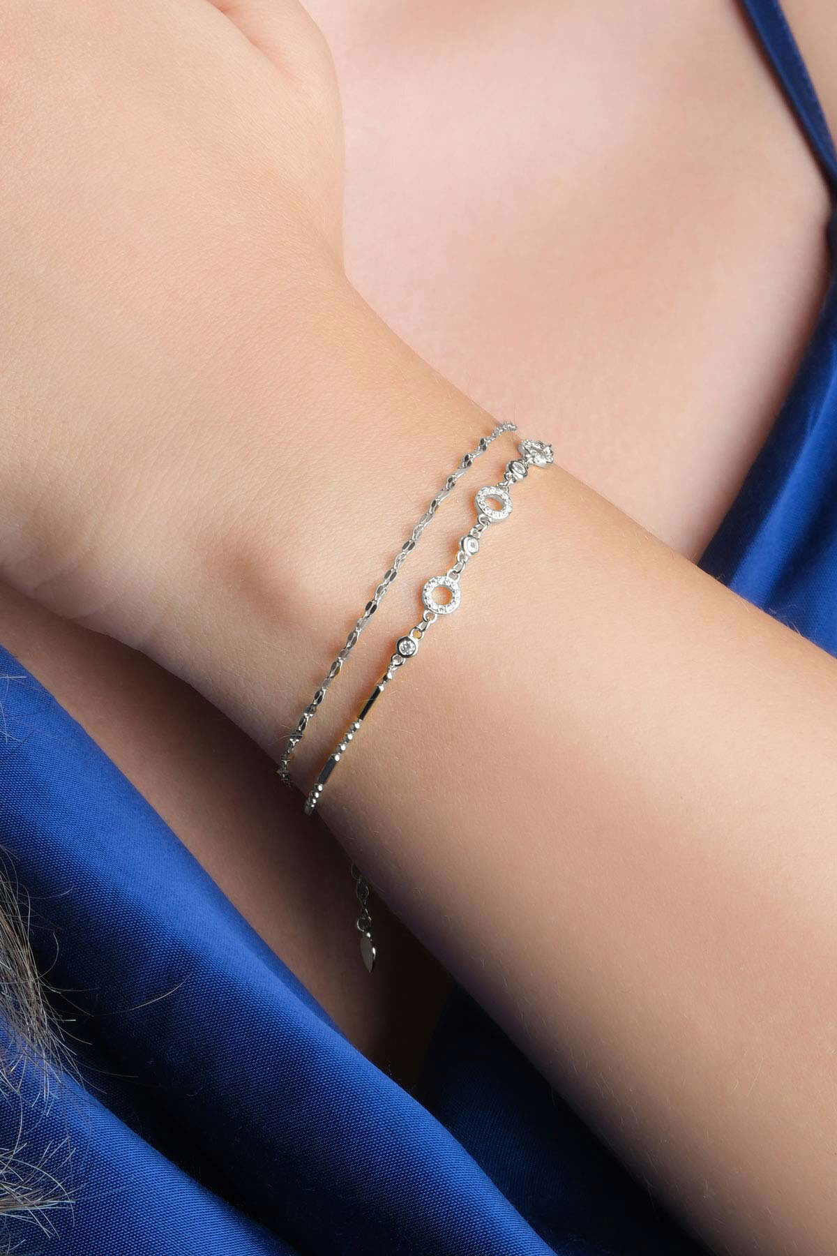 Minimal 18 Ayar Beyaz Altın Kaplama 19 Cm Gümüş Zincir Bileklik 520801