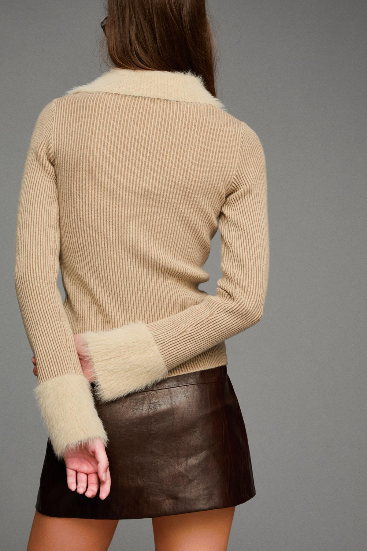 Suni kürk yakalı fermuarlı hırka Suni kürk yakalı fermuarlı hırka 06989686 L