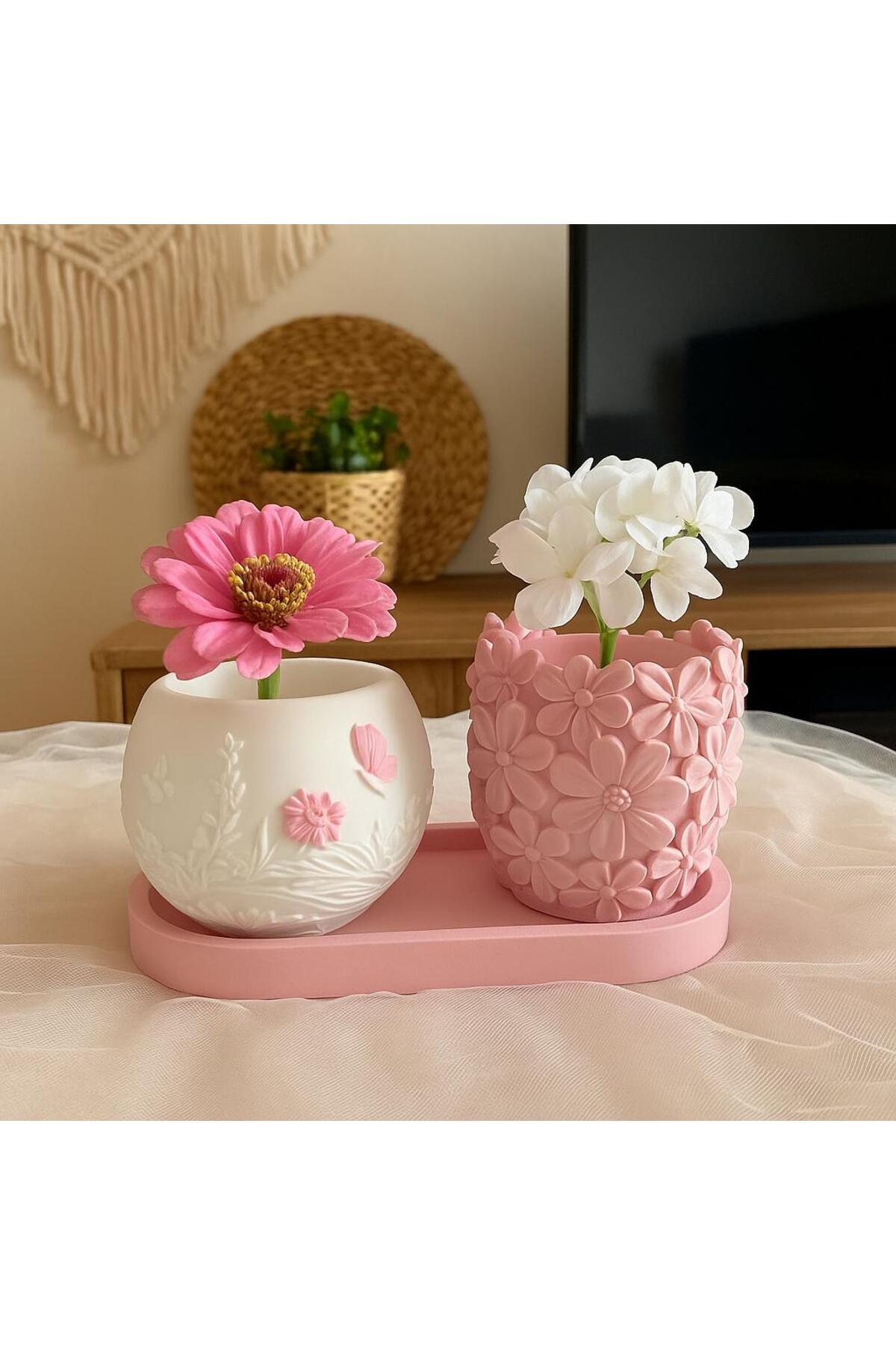 Çiçek ve Kelebek Desenli 3’li dekoratif Set - Beyaz - Pembe (Tepsili) Çiçek ve Kelebek Desenli 3’li dekoratif Set - Beyaz - Pembe (Tepsili) WP30158900 تک سایز