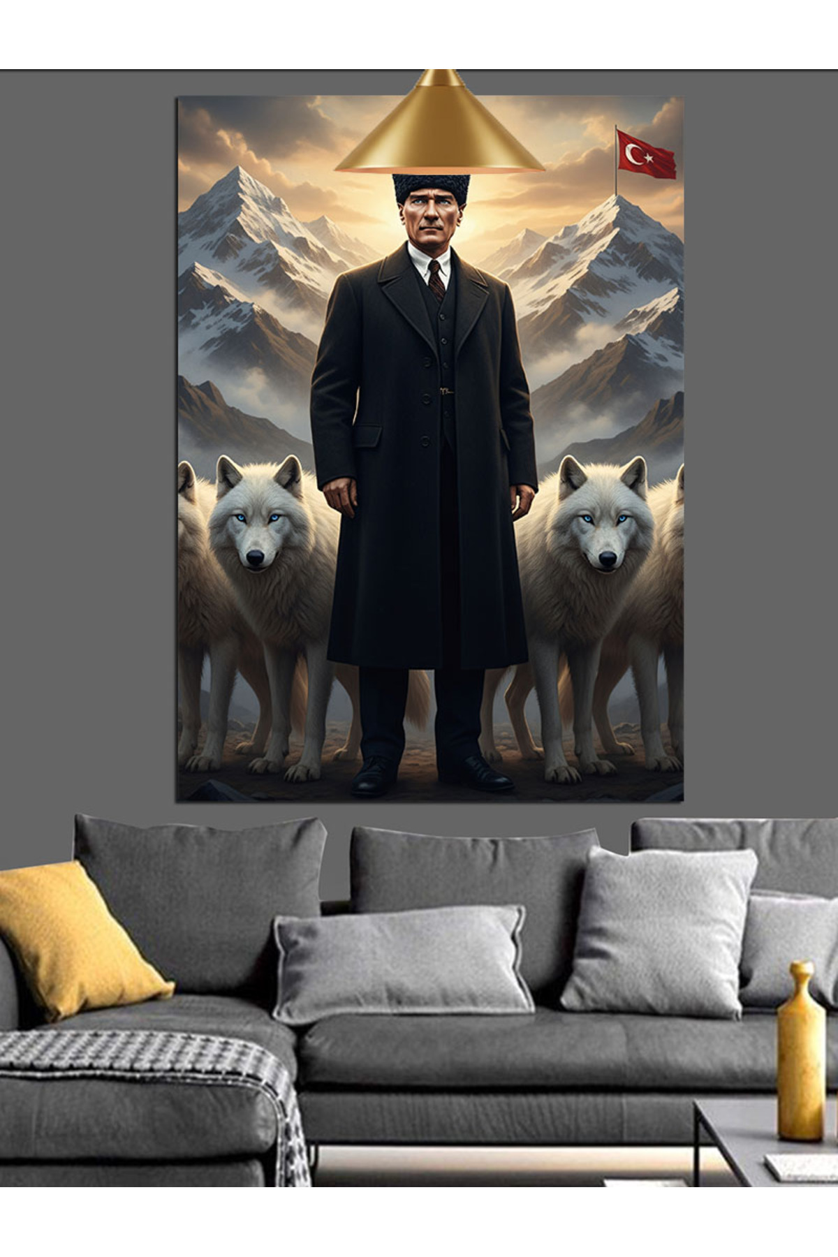 Atatürk Ve Kurt Portresi Dekoratif Kanvas - Mdf Ahşap Tablo Atatürk Ve Kurt Portresi Dekoratif Kanvas - Mdf Ahşap Tablo DKEEY143064 100 x 140