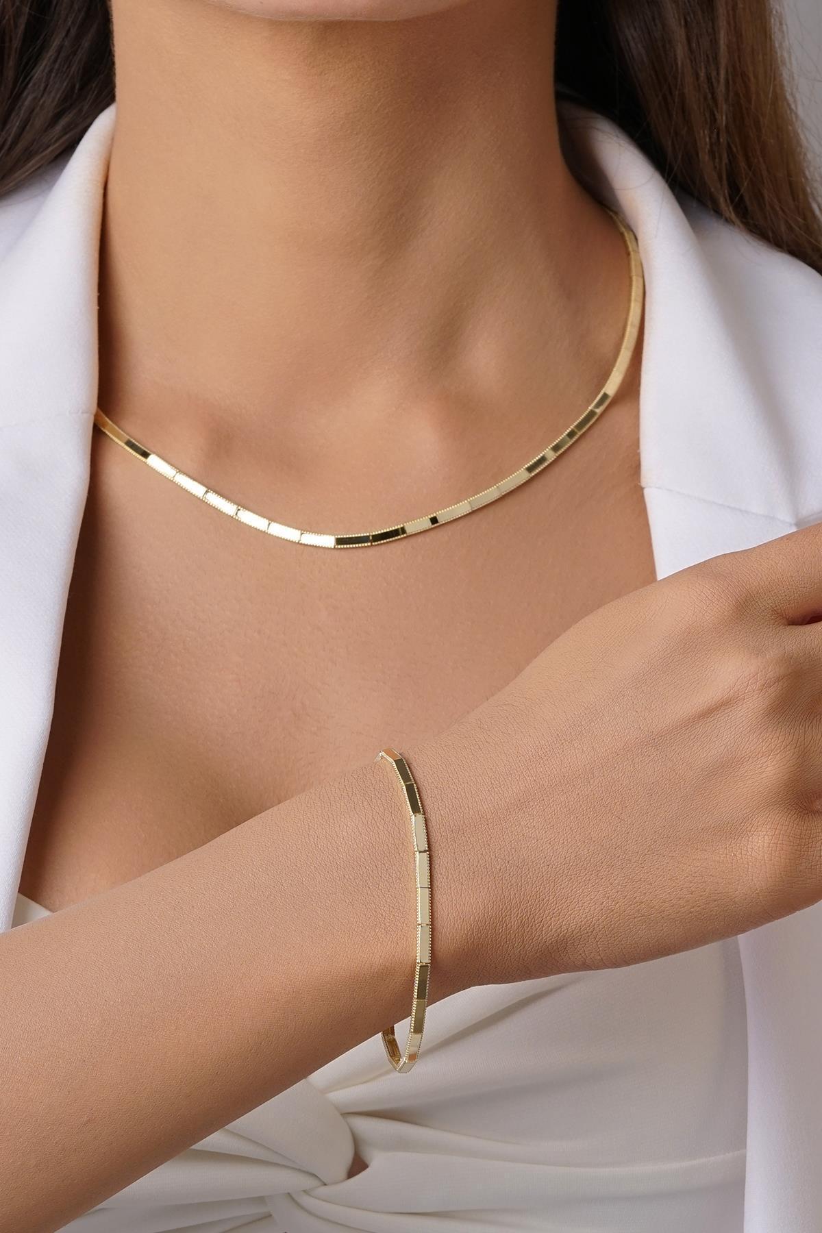 14 Ayar Altın Greek Zincir Set 14 Ayar Altın Greek Zincir Set SET0025 تک سایز