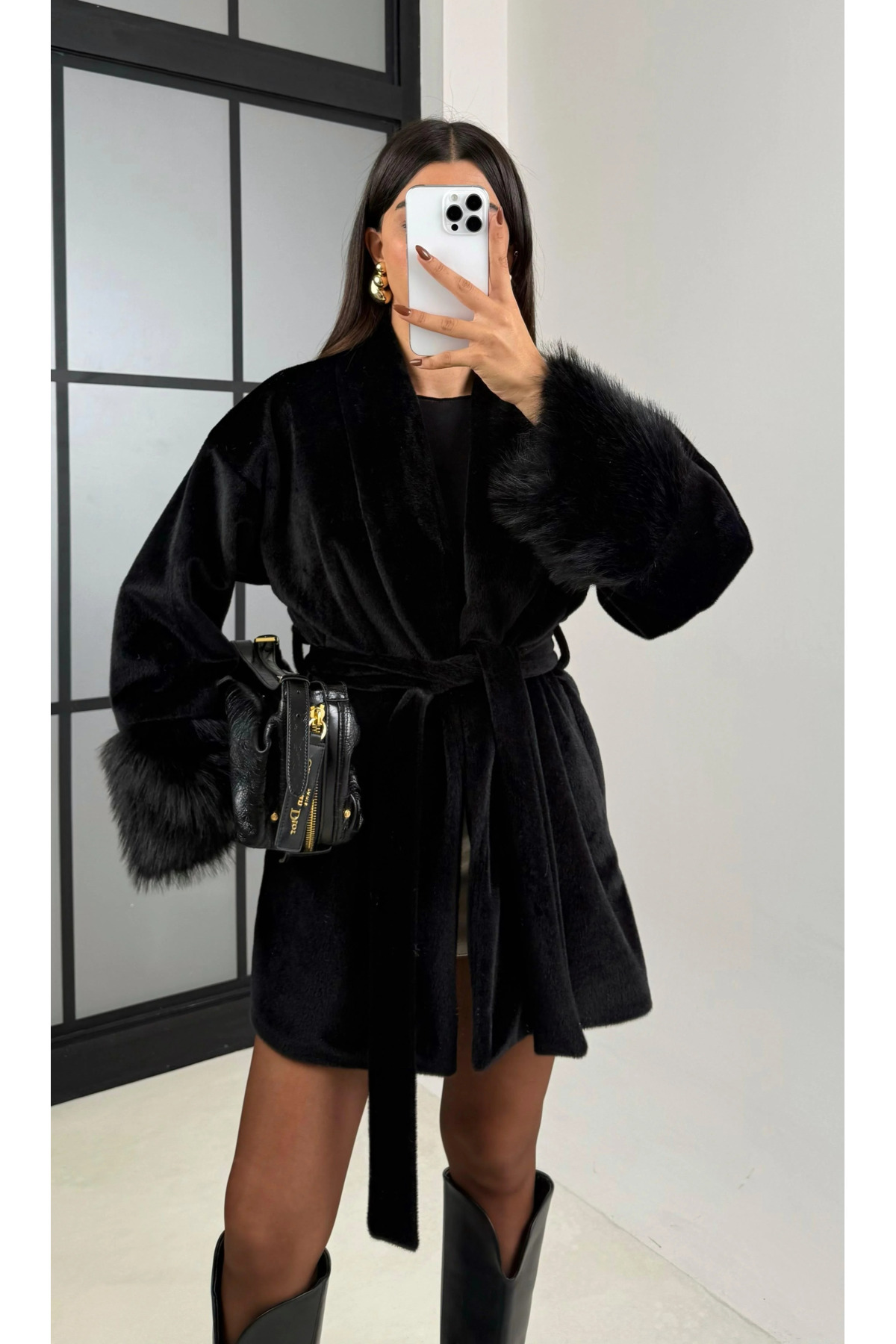 Siyah Kolu Kürklü Kaşe Ceket - 2509 Siyah Kolu Kürklü Kaşe Ceket - 2509 Base - 2509 Standart