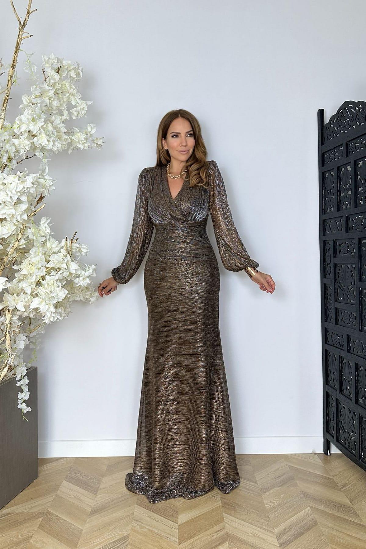 Lacivert Simli Uzun Kol Abiye Lacivert Simli Uzun Kol Abiye P-0000017044 48