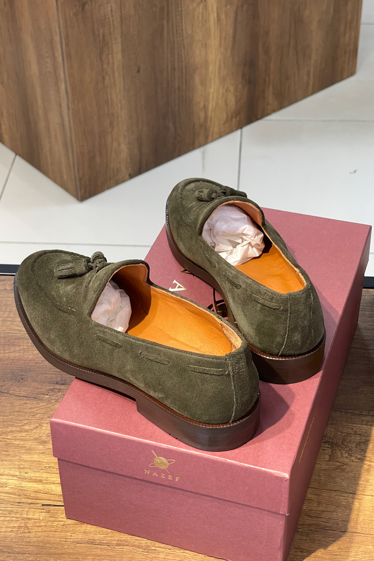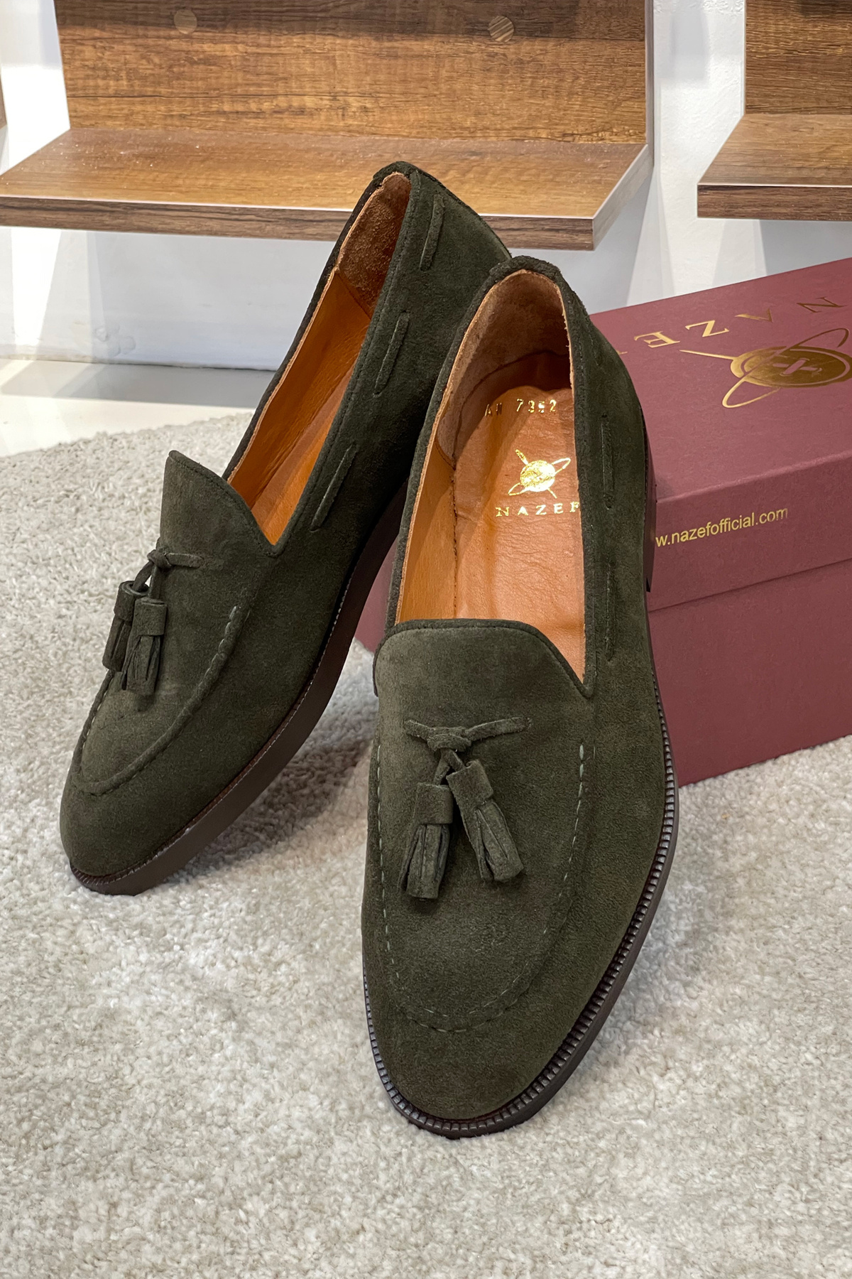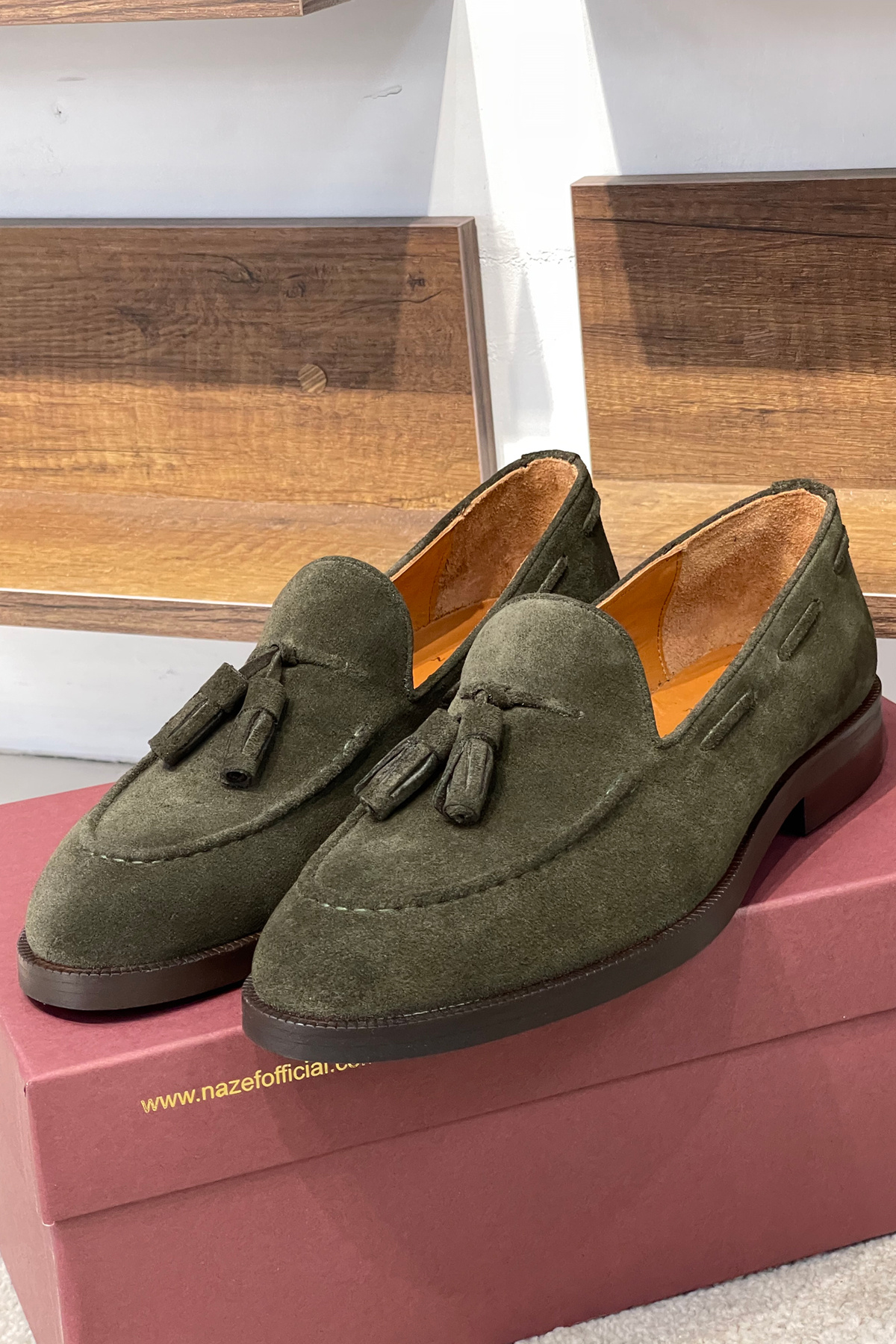 Erkek Hakiki Süet Deri Koyu Yeşil Püsküllü Neolit Tabanlı Loafer Ayakkabı Erkek Hakiki Süet Deri Koyu Yeşil Püsküllü Neolit Tabanlı Loafer Ayakkabı NZF-7952 46