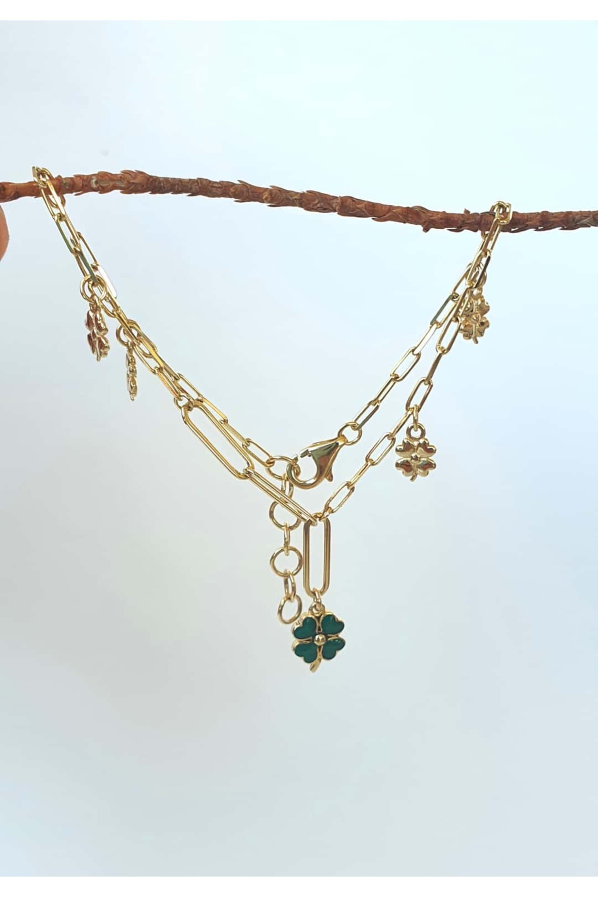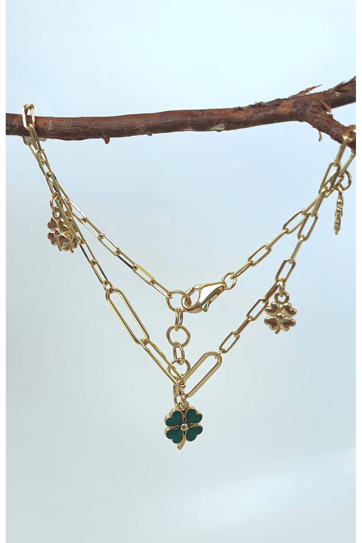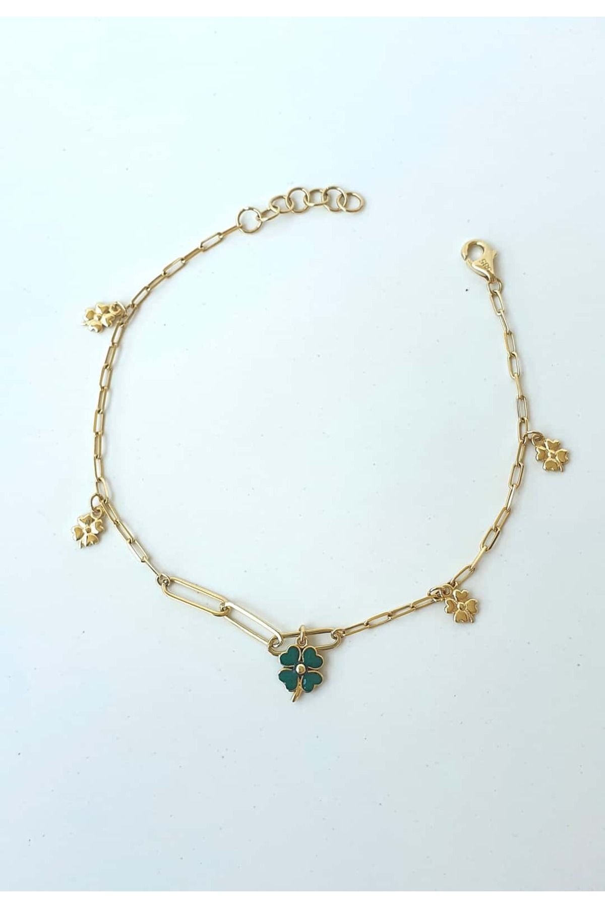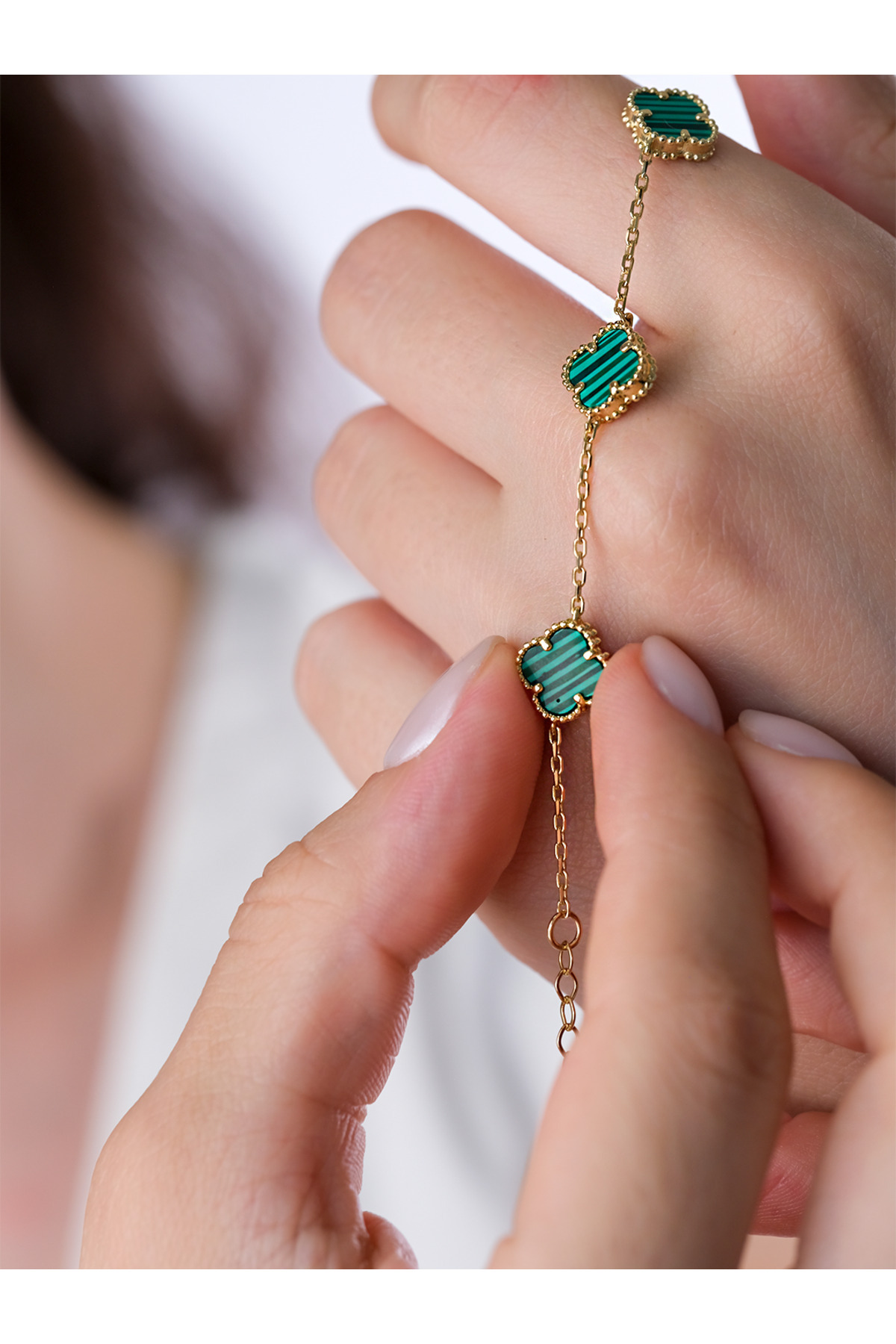 Kadın Yeşil Yoncalı Sallantılı 14 Ayar Altın Bileklik Kadın Yeşil Yoncalı Sallantılı 14 Ayar Altın Bileklik TYC4670467C71477DF160F400 20 cm